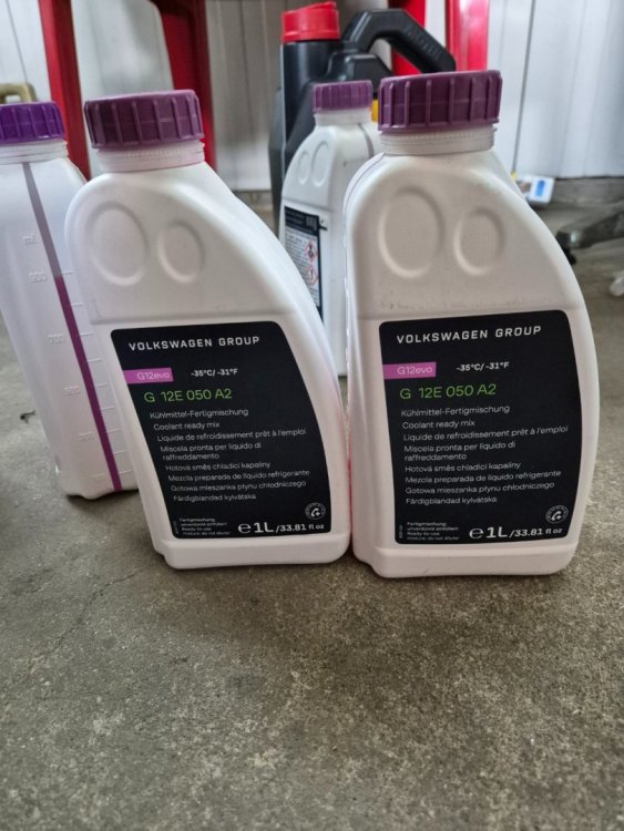 2. Пускам нещо, което всеки може да тълкува както иска и да взима или не предвид. Изводите са индивидуални. Доставиха ми 7L OEM антифриз. Доставчика е Интер Карс. Когато наредих тубите една до друга ми направи впечатление, че цветовете са коренно различни. Макар че всички туби са идентични и маркирани с парт номера G 12E 050 A2. При тестване се установява, че тъмният антифриз показва това, което обещава, а именно -35C. Светлият по-розовеещ за сметка на това вади незавидните -10C. Та имайте си едно на ум