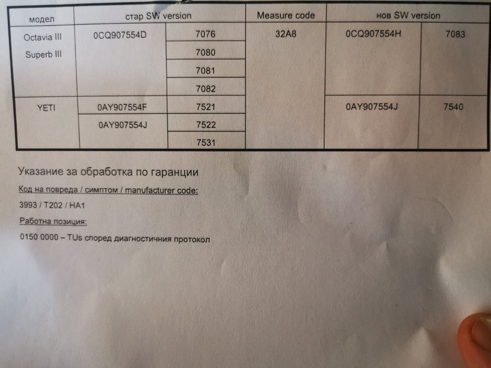 8. Притежавам о3, 1.8тси, 4х4, ДСГ, комби, 2014г отскоро. Направи ми лошо впечатление превъртането на гуми при силен старт, както и при рязко доускорение (примерно с 70кмч на спорт с кикдаун), също така недозавиването при подаване на газ в завои (до скоро карах Йети с халдекс 4 и то беше много по-стабилно и адекватно, в завои отиваше на презавиване, като си с повече газ...). Затова се поинтересувах в Еуратек за евентуален проблем с халдекса. Всичко си ми беше наред по колата, само софтуера на халдекса имаше важен ъпдейт, който оправя точно тези забелязани отмен нередностти. Ъпдейтът е за халдекс 5, в прикачен файл съм снимал бележката, която ми дадоха от Еуратек. Покарах колата и разликата е огромна, вече старта й си е старт, в завои стои както трябва, усеща се стабилна и приятна за каране.