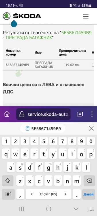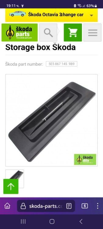 Дали е това? https://www.skoda-parts.com/spare-part/5e58671459b9-storage-box-skoda-36795.html По този партиден номер не излиза при справка за асортимент на сайта на Еуратек, само малката част (държача), който е част от самата преграда, открих там - 6V0061104 Не пречи да звъннете или да се разходите в удобно за Вас време до най-близкият до Вас Еуратек и да ги питате. Или в магазин, предлагащ аксесоари. Преграда - 5E58671459B9 Държач - 6V0061104 На снимката долу партидният номер на преградата е непълен, липсва 9B9. Това, което имам, което съм снимал и дал линкове към, е от Октавия 3 лифтбек 2017, не видях да има различни за комби.1 point