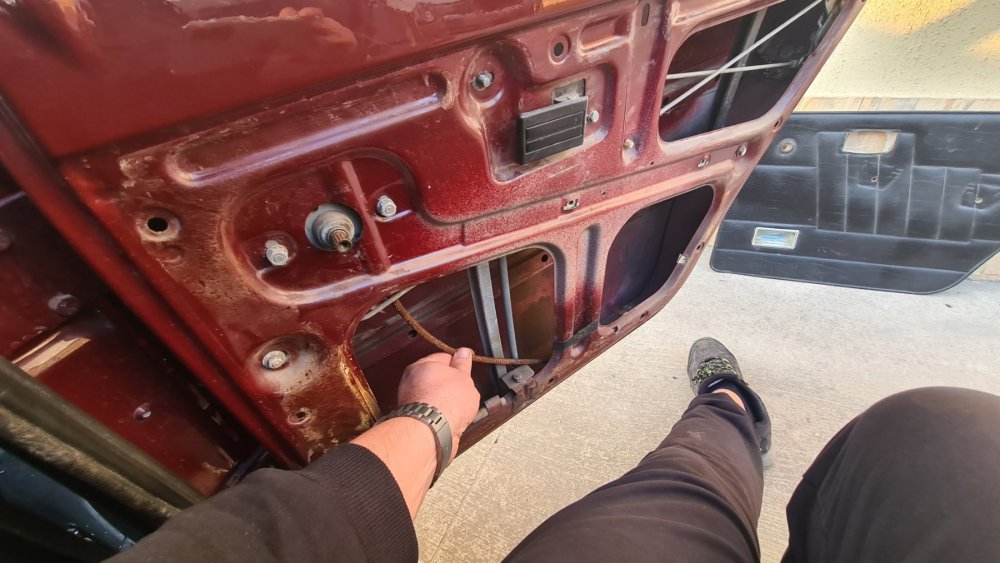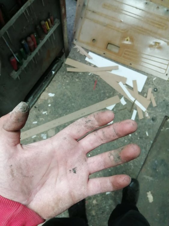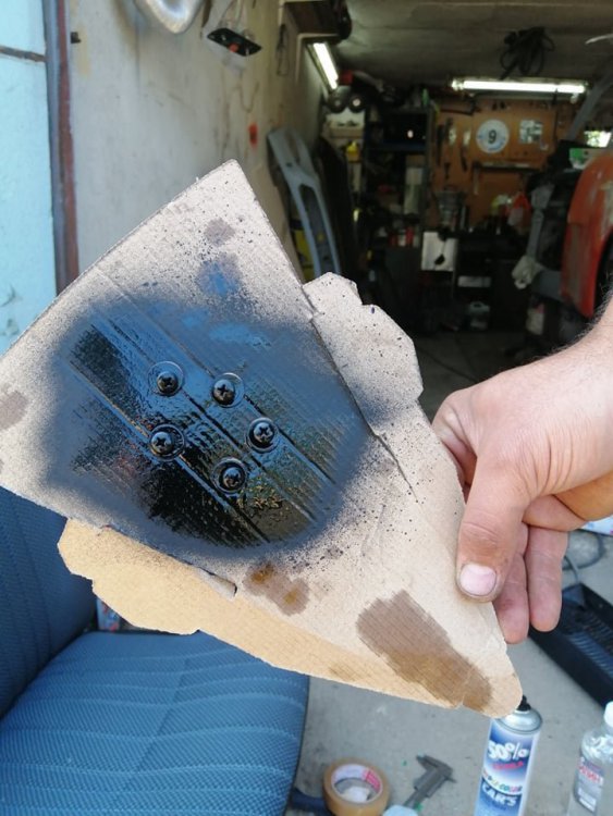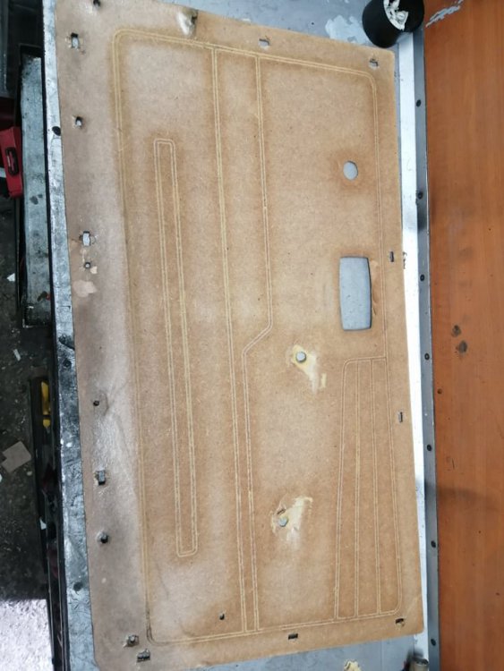 Няма експлоататори, правя всичко, първо щот ми е кеф да работя по тея кошари, както и защото уважавам хората и искам да ги зарадвам... Патрик, точно ти да кажеш, че има внимание към детайла, за мен е голяма гордост!!! И сега да не съм ОФФ, да се отчета какво правих последните дни... В общи линии продължавам с интериора... Почистих добавките на вратите... След тва се заех с корите... Реално погледнато, оригиналните кори на вратите са в топ състояние, но кат ще е ГЛС да е ГЛС и се заех с гнилаците от донора. Ясно е, че през годините никой не обръща внимание на цялостта на найлоните под корите, както и на допълнителното импрегниране на шперплата, в резултат на което, на всички ни е ясно какво се получава... Реших, да подменя шперплата с малко по-съвременен такъв, със слой ламинат, който смятам, че ще ги направи малко по дълготрайни. Сашко каза, че тва си е обикновен картон и няма кво да се направи, но аз смятам, че ще изкара достатъчно дълго... След като разчертах по шаблон точното копие, се заех с изрязването на отворите... След това скучно повторение още 3 пъти с което няма да ви занимавам. Срещнах обаче сериозно затруднение с демонтажа на "джобовете" на предните кори, защото са захванати чрез запресовани пластмасови пинове, през кората, с метални шайби... Още не съм взел решение как ще ги захвана на "новите" кори, но ще го измисля... След това направих шаблони на топлото запресоване на винила, което прави корите релефни , за да мога да подменя дунапрена, между винила, найлона, и шперплата... За жалост нямам снимки, но по шаблон изрязах линиите в плат за тавани с дунапрен, който е в приблизителната дебелина на заводския дунапрен, след това ги залепих за найлона, след което за винила, и след това за шперплата. Тук също реших да НЕ послушам Сашко, който предложи да купя или шванти за миене на чинии или с едно ново макетно ножче да режа парченца по 5мм. (той твърди,че може да ги изреже перфектно гладко) от гъбички за миене на чинии, щот нямало от къде да намеря токова тънък дунапрен, освен това, не е нужно да правя шаблон и да изрязвам лентичките в които потъва топлия печат, а просто да притискам добре с молив с гумичка, когато лепя "картона" с "хелметекс"... реших да не ползвам неговия метод и действах по моя, като замених "хелметекс" с "Момент" Падна едно лепене, едно надишване... 2 дни след работа по няколко часа... Резултата ме задоволява, сега със сигурност по метода на Сашко, щяха да станат по-добре, щот той тва го е правил на 14 и му е игра, но мен ме задоволяват и така...12 points