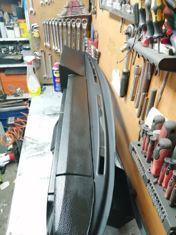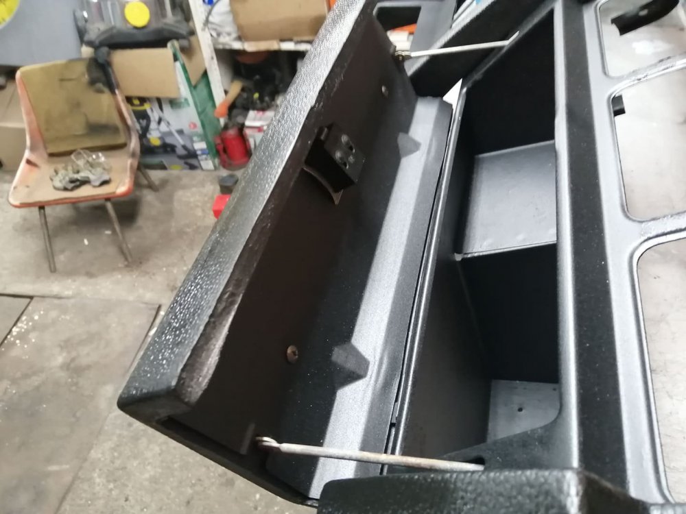 Безсмисления пост продължава!!! След коланите се заех с таблото... Разглобих го напълно... И започнах да премахвам ръжди... След това възтанових грапавата, видима част, против отблясъци в челното стъкло... Хареса ми как става и реших, така и така имаше ръждички около отвора на жабката , както и по металния гръб на вратичката, а винаги ме е дразнела гладката ламарина, когато отвориш жабката и ги направих грапави ... След това изчистих ръждичките на централната конзола... Както и на декоративната лайстна... След това почистих всички гумени детайли... Бях забравил металната част под радиото... След това събрах Таблото... А ето как изглежда вече жабката, когато се отвори... Забравих да отбележа, че подмених духалките с такива със здраво уплатнение. След като таблото беше готово на 80%, почистих барчето... Както и етажерката под жабката...14 points