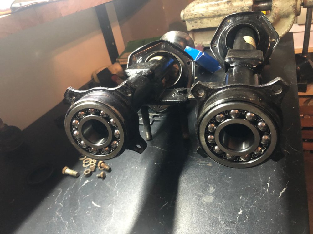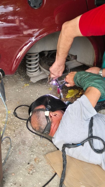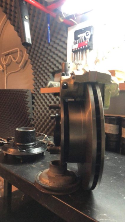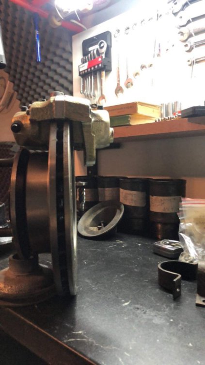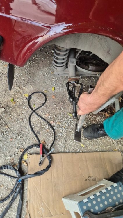 Здравейте на всички От бая време не съм писъл в темата , а пък не е като да няма развитие про проекта , но както предполагам знаете , понякога в проектите има периоди на застой и точно такъв беше периода Май-Ноемви. Както и да е, застояат в общи линии приключи и малко се задвижиха нещата , та реших да ви споделя. Нещата потръгнаха отново някъде Ноември , когато един ден просто ми щукна и отидох да си купя предни вентилирани дискове. Както знаете спирачните апарати бяха подготвени за такива. Патрик @SKODA 105 RS, беше направил доста стабилно пручване , кои дискове са най-близо до заводските размери и бая време се назландисвах , та накрая отидох и ги купих. Дисковете са от Ауди 80 . Та купих дискове и веднага при стругаря . Той от своя страна разшири централния отвор , намали им диаметъра ( защото бях с около 2 мм по-голям диаметър от заводските) , разпроби ги за монтаж към главината. До тък добре но само това не бе достатъчно. Намалихме и диаметъра на главините защото , както ще видите по-долу от снимките апарата реално нямаше как да се захване. И в крайна сметка нещата паснаха. Естесвено бяха закупени чисто нове конусни лагери , и също така нова смазка. Тук искам да благодаря на Момчил @m_g за помоща по набавяне на смазка Мобил , същата , която той е ползвал за неговите главини. Главините преди : Главините след : Накладките Така , и започнах да сглобявам , но се оказа ,че супорта леко опира в диска и се наложи да отнема малко матр'ял от него Реално двете уши само опираха и то мн леко в диска. диска и апарата : 6CCCF2D5-9E78-4146-85C7-5FFD5B9D882C.MOV До тук добре , събрах шенкелите с дисковете , апаратите и те застанаха , ред е да продължим със окачването. Та , понеже от 130-ката магарето беше много зле , успях да с сдобия с чисто ново такова , както и нови долни носачи. Естествено искам да подчертая ,че всички тампони и втулки , както и осите на носачите са нови и шенкелните болтове , а да да не забравя и пружините Това , което не е ново бе изпясъкоструено обработено против ръжда , грундирано и боядисано основно от мен , с изкючение на горните носачи , който минаха на прахови , защото те не бяха нови. Тук искам да благодаря на Коце @malkiq за това ,че се измъчи с набиването на тампоните на горните носачи и също така със втулките на шенкелите , които освен ,че се набиват а и се райбероват ии сега редно е всичко да си дойде по местата , но нека не забравяме и пружините спортни ниски чешко производство за 120 И ето едно сглобено окачване Истината е ,че освен движението по окачването , което все още очаква ревизираната кормилна рейка и амортесьори , които са в процес на случване , има и развитие по двигателя , но за това се надявам да пиша в идния месец . Поздрави и лека вечер на всички.13 points