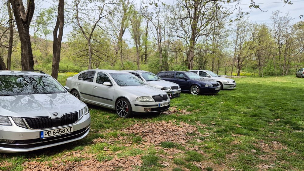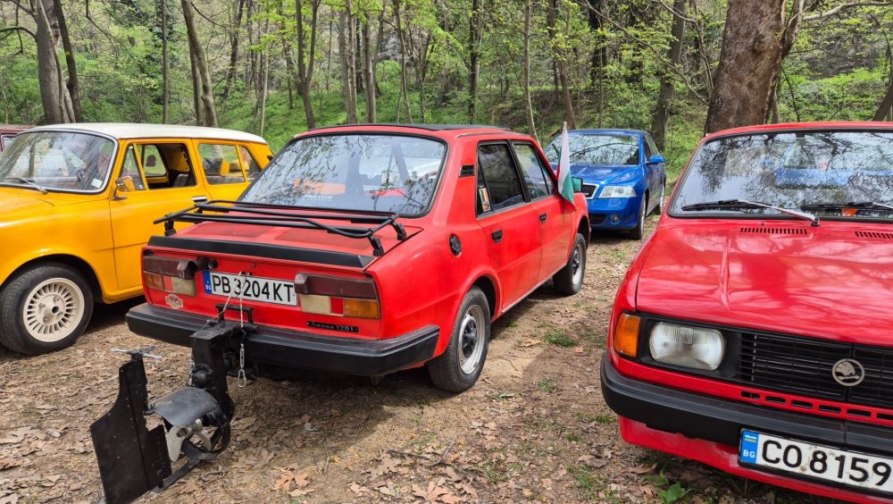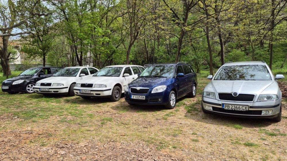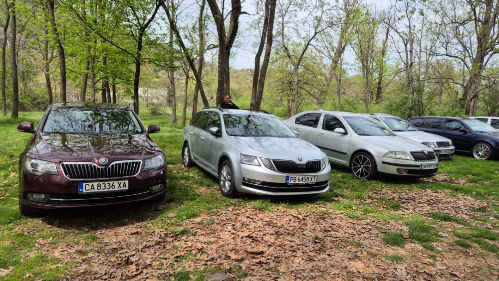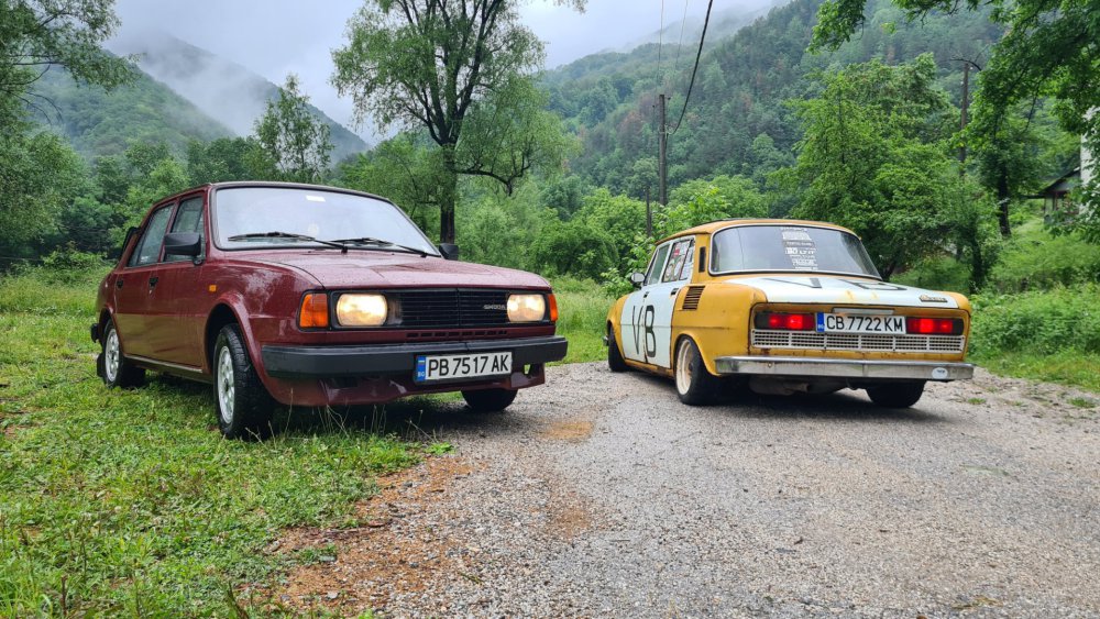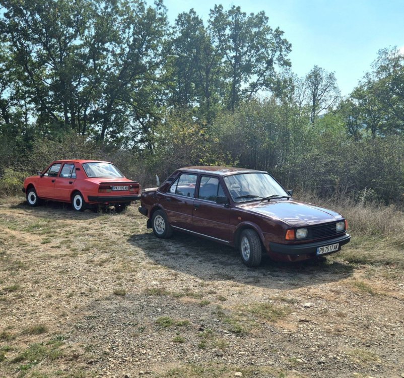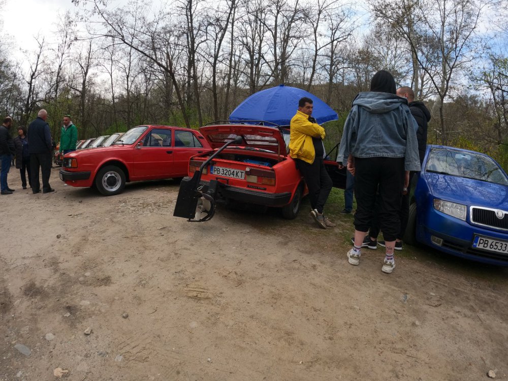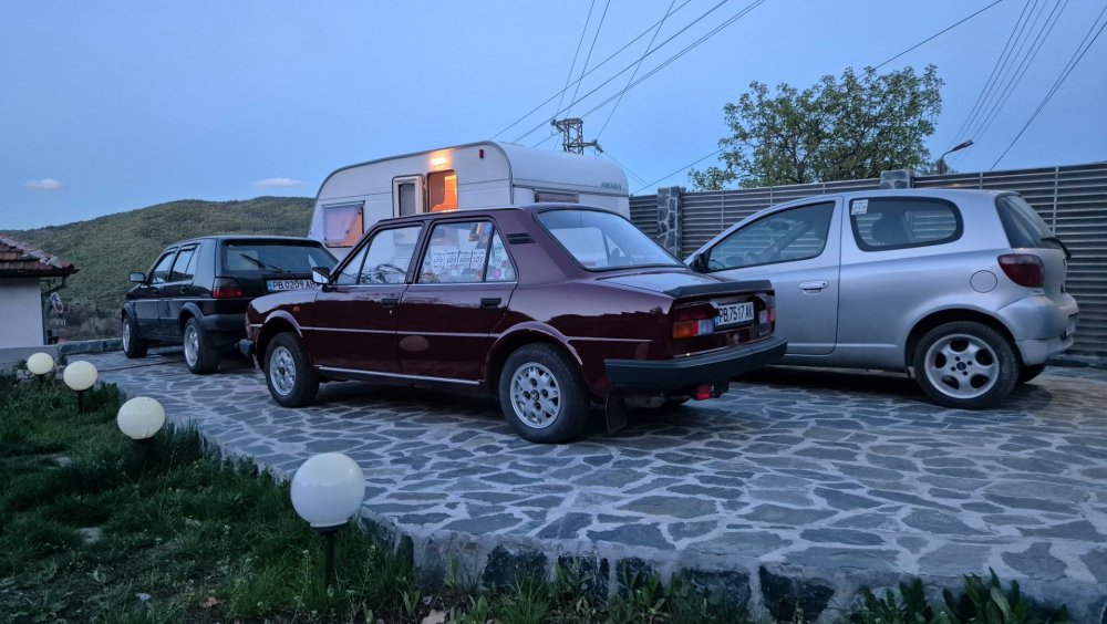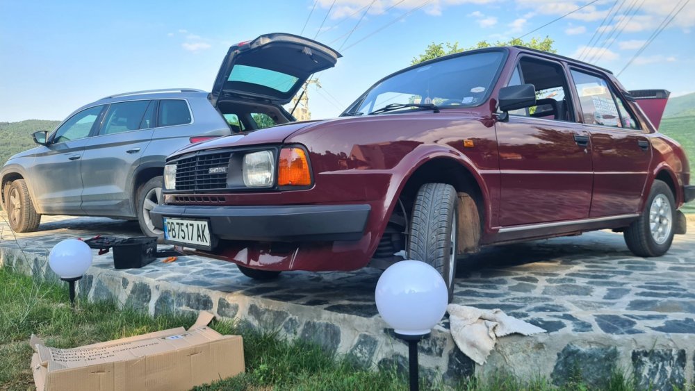 Ами то се е видяло, че веднъж годишно ще пиша в темата, така че спокойно мога да поразкажа малко какво се случи изминалата година с колата. Ще бъде сравнително дълъг фоторазказ, съжалявам, ако доскучае на някой Изминалата година и половина от предния ми пост беше доста активна за Шкодата. Имаше много каране, приятен брой посетени събития, много разходки, доста ежедневно каране, и разбира се - проблеми. Ще се опитам да карам в хронологичен ред, за да е по-прегледно. Логично, започвам с подготовката на срещата в Първенец през 2023 година. Ден по-рано си взех колата от града и се я прибрах при мен. Едно миене, и вече беше готова за среща: Вечерта направихме и една вечерна разходка из Пловдив с компания: Малко след срещата в Първенец, ми предстоеше едно от важните събития в живота - сватбата ми. Шкодата, макар да не беше младоженската кола, беше част от кортежа към сватбения автомобил. Съответно хубаво миене и подготовка, ето и една-две снимки от деня преди сватбата, и една-две от самата сватба: Тук-таме из разказа ще вкарвам и по някоя снимка от ежедневието. Измежду другите ежедневни коли Шкодата успя да навърти хубав пробег през годината, доста често си я карах и нея, макар да се бях съсредоточил върху новата си стара играчка - Голф 2, на който навъртях над 13000 км за 10 месеца. Ето и първата порция от ежедневни снимки: Не минахме и без ремонти. Единия от тях беше доста стряскащ - на прибиране към вкъщи една вечер градусите взеха сериозно да се вдигат. Живеейки в планината, това си е проблем. Успях да се прибера преди температурата да стигне 100 градуса, и веднага последва ремонт - оказа се окисляване на буксите на перката. Изкарах предницата от площадката, легнах отдолу, направих едно хубаво почистване на кабелните обувки, и всичко си дойде на мястото: Имаше и дребен проблем отзад вляво - започна да тропа, и се оказа скъсан тампон под пружината, лесен и бърз ремонт: Дойде време и за подготовката на първото по рода си събитие - Задномоторна среща 2023 г. С Коцето @malkiq направихме една опознавателна обиколка на мястото, както и на маршрута, който в последствие използвахме за автопохода, и го направихме именно със старите баби: И това пътуване не мина без дребен проблем, по едно време изчезна мощността на колата, за щастие много бързо се усетих какво става - беше се поотхлабило жилото на газта, и педала нямаше ход. Ремонт за 4 минути, и отново газ. Дойде и самата Задномоторна Среща, която беше ПРЕКРАСНА. Тук ще сложа само 2 снимки от нея, другите ги има в темата: Ще си позволя едно лирическо отклонение, което пък е доста важно за самата Шкода. Наложи се да напускам стария гараж, където колата домуваше. Колата преседя няколко месеца на открито, и в последствие реших, колкото и да не ми се иска, да я прибера в подземния гараж. Той пък се превърна в едно доста приятно местенце, защото вътре домуват 3 ретро автомобила - Шкодата, едно много готино трабантче и една перфектно реставрирана Вектра. Стелажите вече отдавна бях напълнил със шкодови части, един плакат за красота, и нещата заспаха. Със съквартиранта ми по гараж се оборудвахме с доста инструменти и аксесоари, нужни за всеки един гараж, както и с маса, столове и чаши. Гаража ни се превърна и в притегателно място за нас и себеподобните ни, и от време на време се събираме там да пием по една бира и да си полафим: Сега пак следва една мал