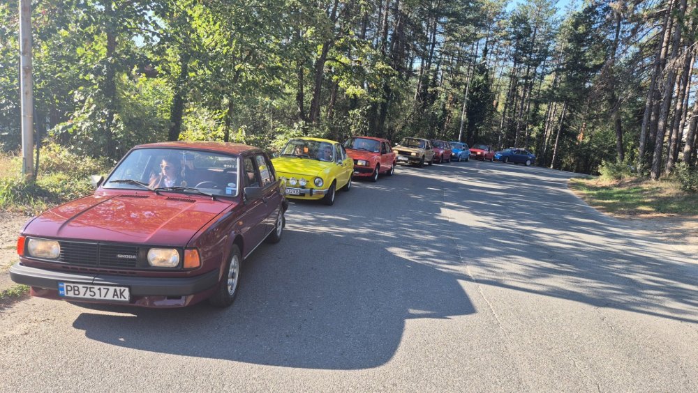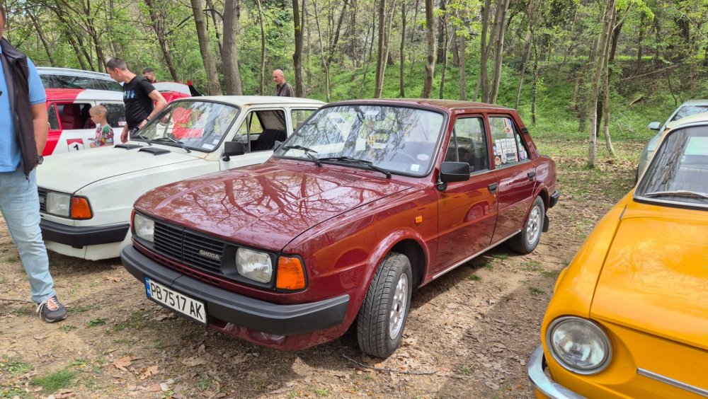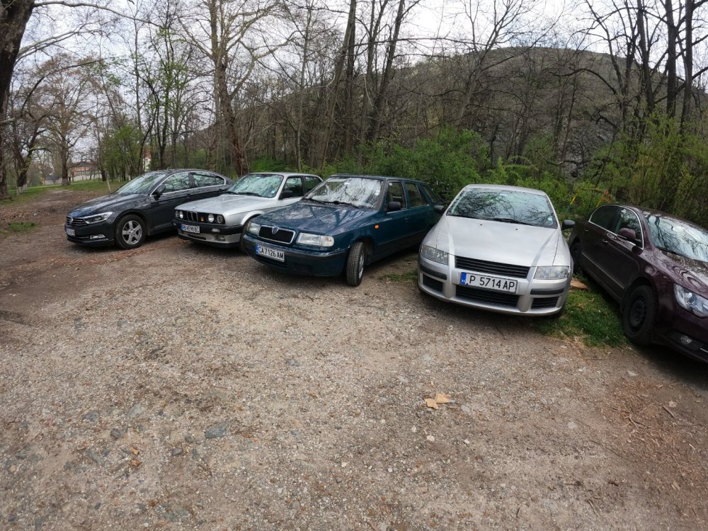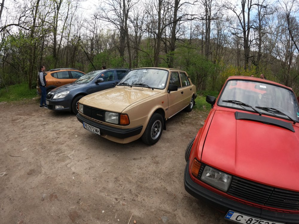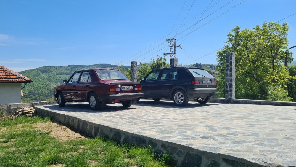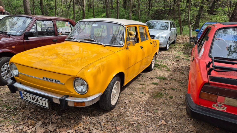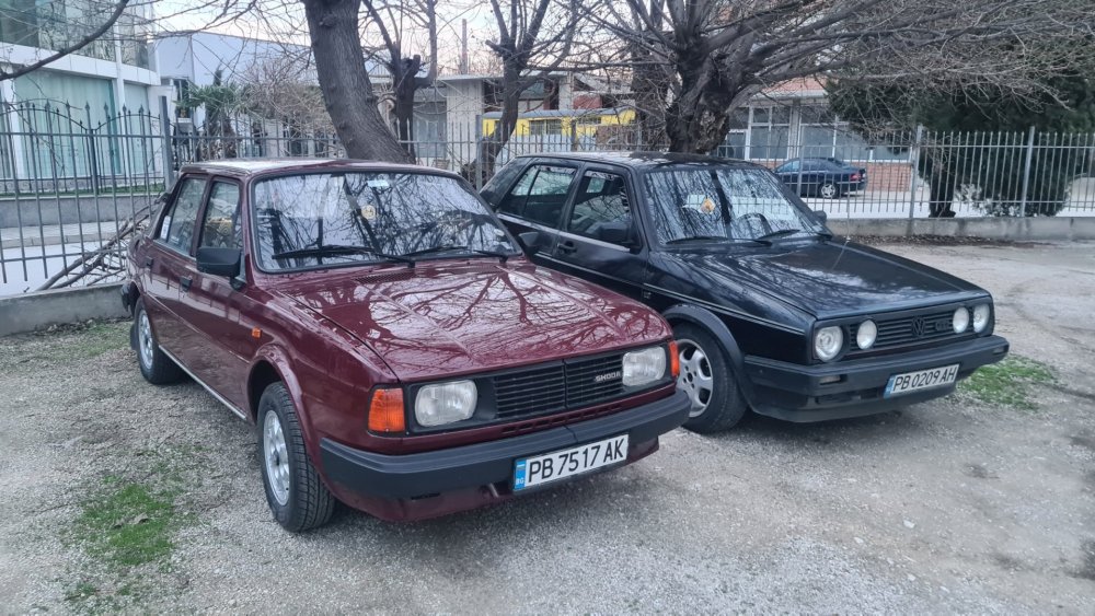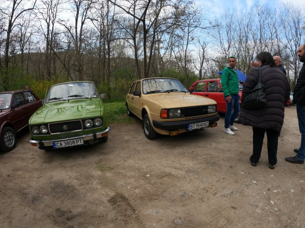 Ами то се е видяло, че веднъж годишно ще пиша в темата, така че спокойно мога да поразкажа малко какво се случи изминалата година с колата. Ще бъде сравнително дълъг фоторазказ, съжалявам, ако доскучае на някой Изминалата година и половина от предния ми пост беше доста активна за Шкодата. Имаше много каране, приятен брой посетени събития, много разходки, доста ежедневно каране, и разбира се - проблеми. Ще се опитам да карам в хронологичен ред, за да е по-прегледно. Логично, започвам с подготовката на срещата в Първенец през 2023 година. Ден по-рано си взех колата от града и се я прибрах при мен. Едно миене, и вече беше готова за среща: Вечерта направихме и една вечерна разходка из Пловдив с компания: Малко след срещата в Първенец, ми предстоеше едно от важните събития в живота - сватбата ми. Шкодата, макар да не беше младоженската кола, беше част от кортежа към сватбения автомобил. Съответно хубаво миене и подготовка, ето и една-две снимки от деня преди сватбата, и една-две от самата сватба: Тук-таме из разказа ще вкарвам и по някоя снимка от ежедневието. Измежду другите ежедневни коли Шкодата успя да навърти хубав пробег през годината, доста често си я карах и нея, макар да се бях съсредоточил върху новата си стара играчка - Голф 2, на който навъртях над 13000 км за 10 месеца. Ето и първата порция от ежедневни снимки: Не минахме и без ремонти. Единия от тях беше доста стряскащ - на прибиране към вкъщи една вечер градусите взеха сериозно да се вдигат. Живеейки в планината, това си е проблем. Успях да се прибера преди температурата да стигне 100 градуса, и веднага последва ремонт - оказа се окисляване на буксите на перката. Изкарах предницата от площадката, легнах отдолу, направих едно хубаво почистване на кабелните обувки, и всичко си дойде на мястото: Имаше и дребен проблем отзад вляво - започна да тропа, и се оказа скъсан тампон под пружината, лесен и бърз ремонт: Дойде време и за подготовката на първото по рода си събитие - Задномоторна среща 2023 г. С Коцето @malkiq направихме една опознавателна обиколка на мястото, както и на маршрута, който в последствие използвахме за автопохода, и го направихме именно със старите баби: И това пътуване не мина без дребен проблем, по едно време изчезна мощността на колата, за щастие много бързо се усетих какво става - беше се поотхлабило жилото на газта, и педала нямаше ход. Ремонт за 4 минути, и отново газ. Дойде и самата Задномоторна Среща, която беше ПРЕКРАСНА. Тук ще сложа само 2 снимки от нея, другите ги има в темата: Ще си позволя едно лирическо отклонение, което пък е доста важно за самата Шкода. Наложи се да напускам стария гараж, където колата домуваше. Колата преседя няколко месеца на открито, и в последствие реших, колкото и да не ми се иска, да я прибера в подземния гараж. Той пък се превърна в едно доста приятно местенце, защото вътре домуват 3 ретро автомобила - Шкодата, едно много готино трабантче и една перфектно реставрирана Вектра. Стелажите вече отдавна бях напълнил със шкодови части, един плакат за красота, и нещата заспаха. Със съквартиранта ми по гараж се оборудвахме с доста инструменти и аксесоари, нужни за всеки един гараж, както и с маса, столове и чаши. Гаража ни се превърна и в притегателно място за нас и себеподобните ни, и от време на време се събираме там да пием по една бира и да си полафим: Сега пак следва една мал