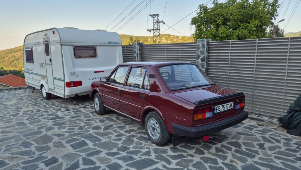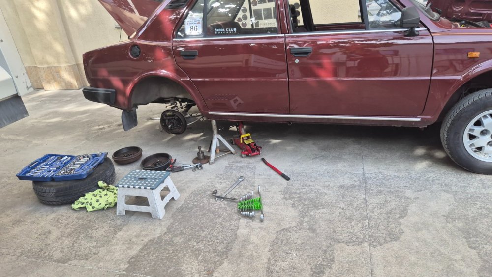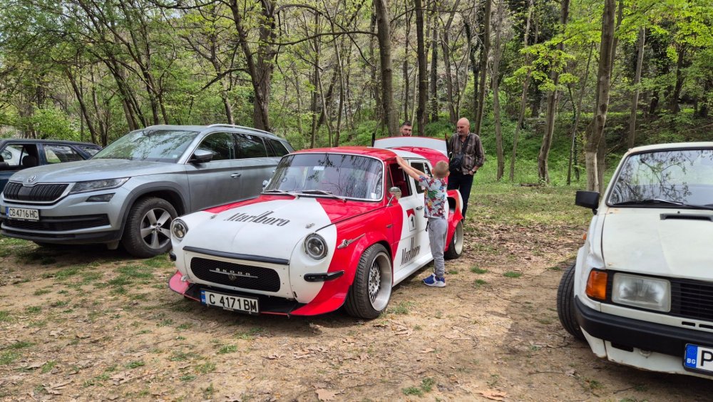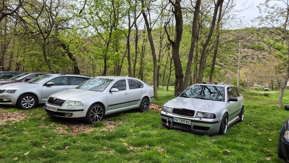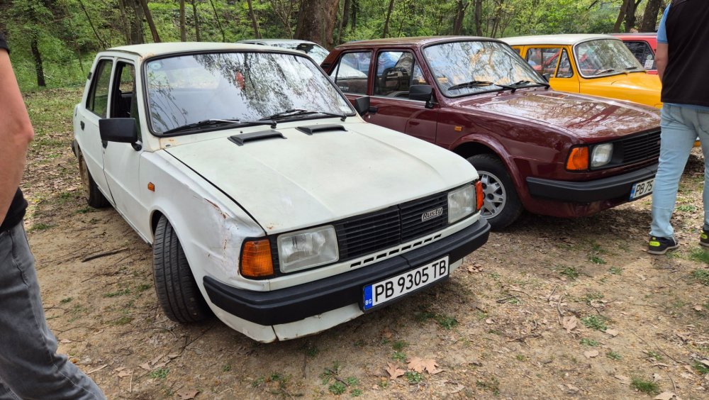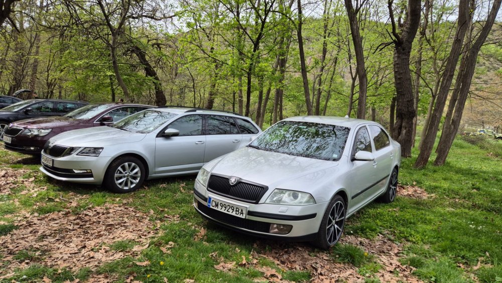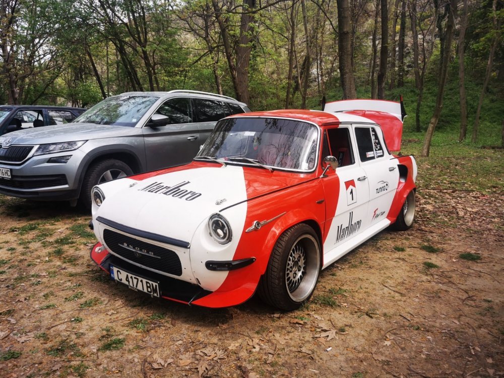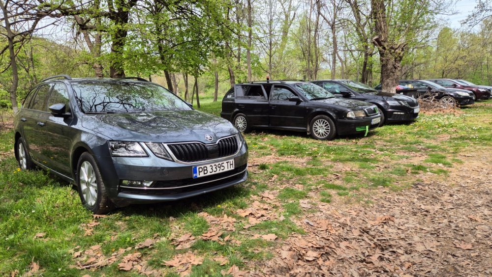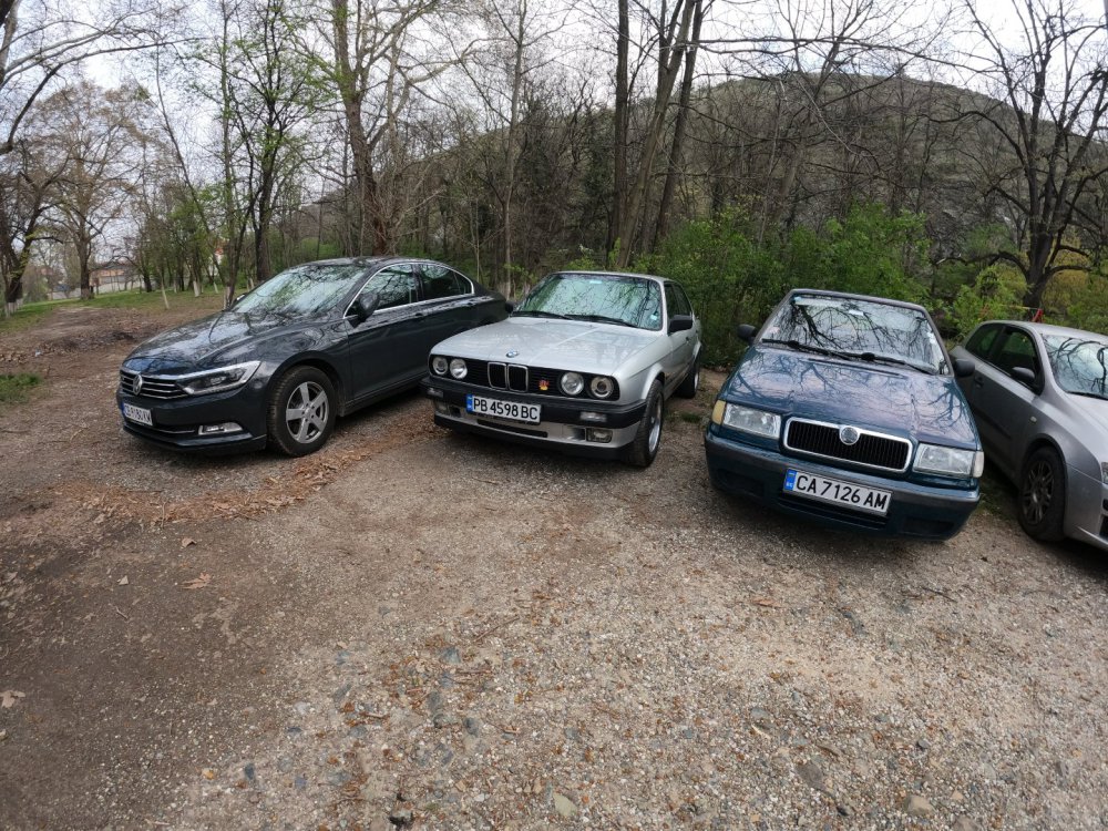 Ами то се е видяло, че веднъж годишно ще пиша в темата, така че спокойно мога да поразкажа малко какво се случи изминалата година с колата. Ще бъде сравнително дълъг фоторазказ, съжалявам, ако доскучае на някой Изминалата година и половина от предния ми пост беше доста активна за Шкодата. Имаше много каране, приятен брой посетени събития, много разходки, доста ежедневно каране, и разбира се - проблеми. Ще се опитам да карам в хронологичен ред, за да е по-прегледно. Логично, започвам с подготовката на срещата в Първенец през 2023 година. Ден по-рано си взех колата от града и се я прибрах при мен. Едно миене, и вече беше готова за среща: Вечерта направихме и една вечерна разходка из Пловдив с компания: Малко след срещата в Първенец, ми предстоеше едно от важните събития в живота - сватбата ми. Шкодата, макар да не беше младоженската кола, беше част от кортежа към сватбения автомобил. Съответно хубаво миене и подготовка, ето и една-две снимки от деня преди сватбата, и една-две от самата сватба: Тук-таме из разказа ще вкарвам и по някоя снимка от ежедневието. Измежду другите ежедневни коли Шкодата успя да навърти хубав пробег през годината, доста често си я карах и нея, макар да се бях съсредоточил върху новата си стара играчка - Голф 2, на който навъртях над 13000 км за 10 месеца. Ето и първата порция от ежедневни снимки: Не минахме и без ремонти. Единия от тях беше доста стряскащ - на прибиране към вкъщи една вечер градусите взеха сериозно да се вдигат. Живеейки в планината, това си е проблем. Успях да се прибера преди температурата да стигне 100 градуса, и веднага последва ремонт - оказа се окисляване на буксите на перката. Изкарах предницата от площадката, легнах отдолу, направих едно хубаво почистване на кабелните обувки, и всичко си дойде на мястото: Имаше и дребен проблем отзад вляво - започна да тропа, и се оказа скъсан тампон под пружината, лесен и бърз ремонт: Дойде време и за подготовката на първото по рода си събитие - Задномоторна среща 2023 г. С Коцето @malkiq направихме една опознавателна обиколка на мястото, както и на маршрута, който в последствие използвахме за автопохода, и го направихме именно със старите баби: И това пътуване не мина без дребен проблем, по едно време изчезна мощността на колата, за щастие много бързо се усетих какво става - беше се поотхлабило жилото на газта, и педала нямаше ход. Ремонт за 4 минути, и отново газ. Дойде и самата Задномоторна Среща, която беше ПРЕКРАСНА. Тук ще сложа само 2 снимки от нея, другите ги има в темата: Ще си позволя едно лирическо отклонение, което пък е доста важно за самата Шкода. Наложи се да напускам стария гараж, където колата домуваше. Колата преседя няколко месеца на открито, и в последствие реших, колкото и да не ми се иска, да я прибера в подземния гараж. Той пък се превърна в едно доста приятно местенце, защото вътре домуват 3 ретро автомобила - Шкодата, едно много готино трабантче и една перфектно реставрирана Вектра. Стелажите вече отдавна бях напълнил със шкодови части, един плакат за красота, и нещата заспаха. Със съквартиранта ми по гараж се оборудвахме с доста инструменти и аксесоари, нужни за всеки един гараж, както и с маса, столове и чаши. Гаража ни се превърна и в притегателно място за нас и себеподобните ни, и от време на време се събираме там да пием по една бира и да си полафим: Сега пак следва една мал