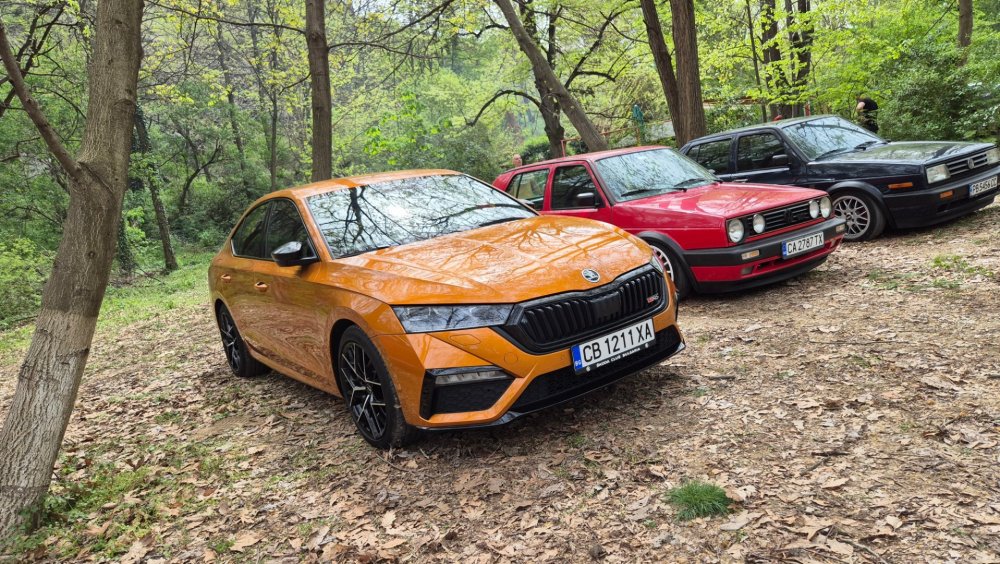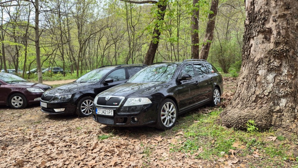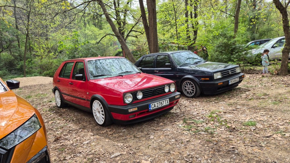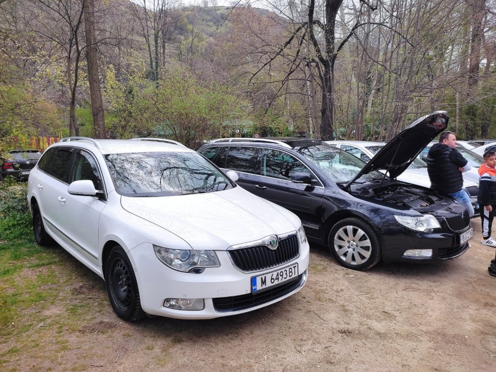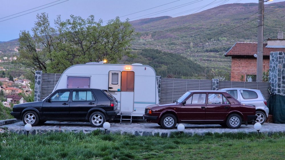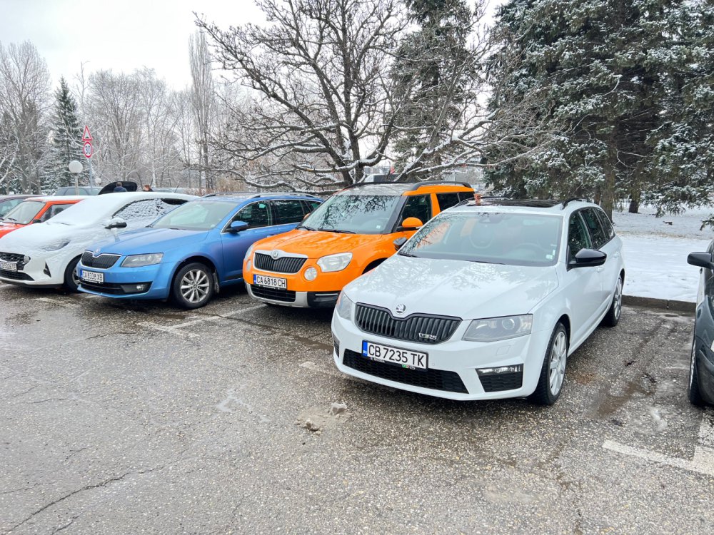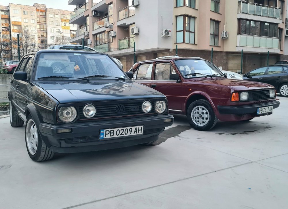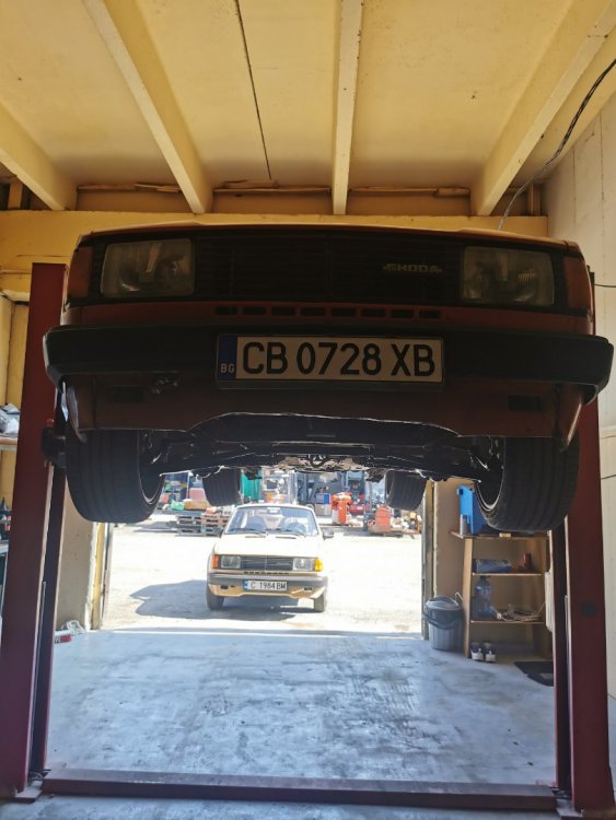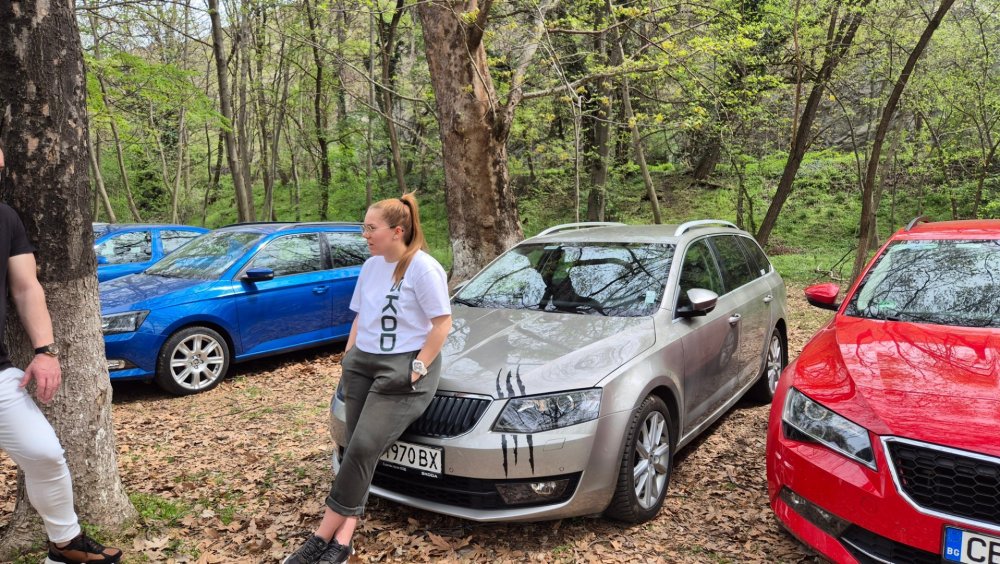 Ами то се е видяло, че веднъж годишно ще пиша в темата, така че спокойно мога да поразкажа малко какво се случи изминалата година с колата. Ще бъде сравнително дълъг фоторазказ, съжалявам, ако доскучае на някой Изминалата година и половина от предния ми пост беше доста активна за Шкодата. Имаше много каране, приятен брой посетени събития, много разходки, доста ежедневно каране, и разбира се - проблеми. Ще се опитам да карам в хронологичен ред, за да е по-прегледно. Логично, започвам с подготовката на срещата в Първенец през 2023 година. Ден по-рано си взех колата от града и се я прибрах при мен. Едно миене, и вече беше готова за среща: Вечерта направихме и една вечерна разходка из Пловдив с компания: Малко след срещата в Първенец, ми предстоеше едно от важните събития в живота - сватбата ми. Шкодата, макар да не беше младоженската кола, беше част от кортежа към сватбения автомобил. Съответно хубаво миене и подготовка, ето и една-две снимки от деня преди сватбата, и една-две от самата сватба: Тук-таме из разказа ще вкарвам и по някоя снимка от ежедневието. Измежду другите ежедневни коли Шкодата успя да навърти хубав пробег през годината, доста често си я карах и нея, макар да се бях съсредоточил върху новата си стара играчка - Голф 2, на който навъртях над 13000 км за 10 месеца. Ето и първата порция от ежедневни снимки: Не минахме и без ремонти. Единия от тях беше доста стряскащ - на прибиране към вкъщи една вечер градусите взеха сериозно да се вдигат. Живеейки в планината, това си е проблем. Успях да се прибера преди температурата да стигне 100 градуса, и веднага последва ремонт - оказа се окисляване на буксите на перката. Изкарах предницата от площадката, легнах отдолу, направих едно хубаво почистване на кабелните обувки, и всичко си дойде на мястото: Имаше и дребен проблем отзад вляво - започна да тропа, и се оказа скъсан тампон под пружината, лесен и бърз ремонт: Дойде време и за подготовката на първото по рода си събитие - Задномоторна среща 2023 г. С Коцето @malkiq направихме една опознавателна обиколка на мястото, както и на маршрута, който в последствие използвахме за автопохода, и го направихме именно със старите баби: И това пътуване не мина без дребен проблем, по едно време изчезна мощността на колата, за щастие много бързо се усетих какво става - беше се поотхлабило жилото на газта, и педала нямаше ход. Ремонт за 4 минути, и отново газ. Дойде и самата Задномоторна Среща, която беше ПРЕКРАСНА. Тук ще сложа само 2 снимки от нея, другите ги има в темата: Ще си позволя едно лирическо отклонение, което пък е доста важно за самата Шкода. Наложи се да напускам стария гараж, където колата домуваше. Колата преседя няколко месеца на открито, и в последствие реших, колкото и да не ми се иска, да я прибера в подземния гараж. Той пък се превърна в едно доста приятно местенце, защото вътре домуват 3 ретро автомобила - Шкодата, едно много готино трабантче и една перфектно реставрирана Вектра. Стелажите вече отдавна бях напълнил със шкодови части, един плакат за красота, и нещата заспаха. Със съквартиранта ми по гараж се оборудвахме с доста инструменти и аксесоари, нужни за всеки един гараж, както и с маса, столове и чаши. Гаража ни се превърна и в притегателно място за нас и себеподобните ни, и от време на време се събираме там да пием по една бира и да си полафим: Сега пак следва една мал