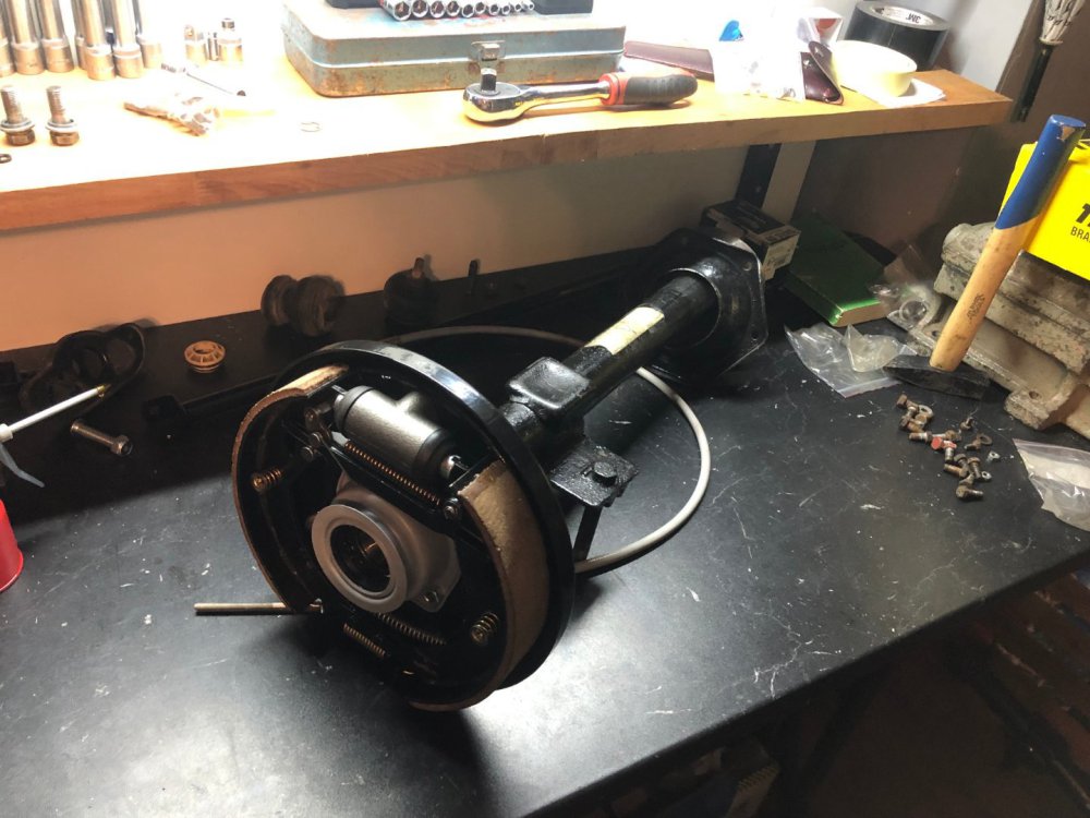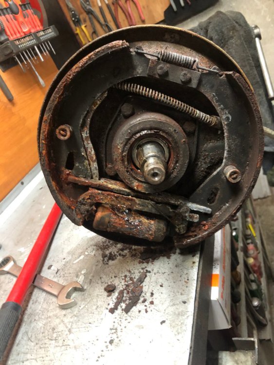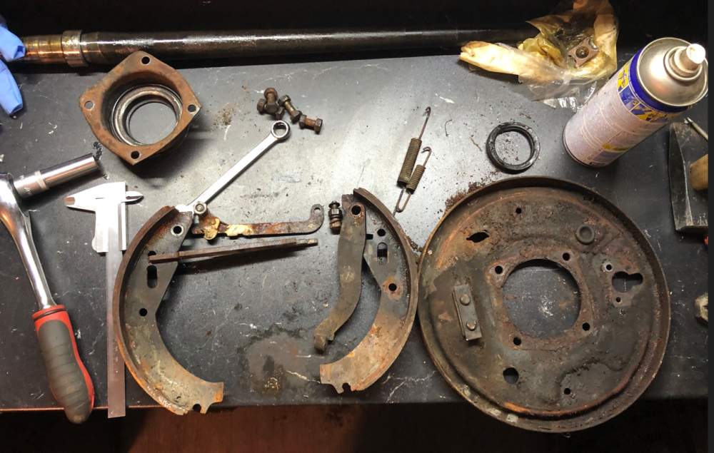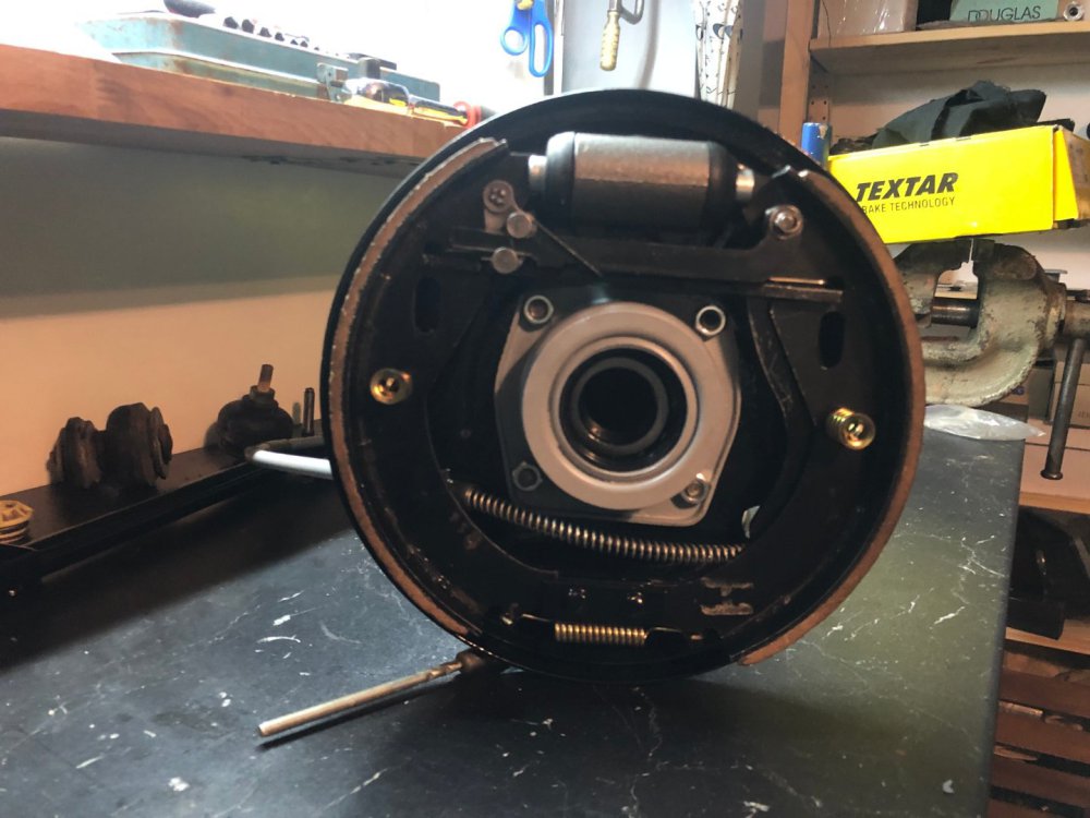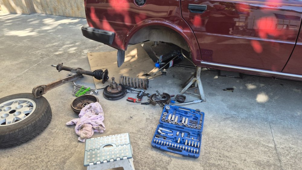 Такам Weekend-a се заиграх със задното окачване, Както предполагам знаете цялата идея е да събера всичко ново готово и подготвено и когато дойде денят , да съберем всичко на една количка и пада старата механика и и на нейно място идва новата. По този повод бях решил да събера чисто ново задно окачване , което да включва : 1. нови задни тампони 2. нови задни амортесьори 3. Нов комплекет семеригинги на всяка полуоска. 4. Нови лагери 5. Изцяло обновени спирачки , което включва : нови барабани , нови накладки , нови пружинки 6. Нови жила за ръжчната За целта Коце ми даде едни полуоси , които седяха в пещерата на аладин , които обаче имаха нужда от цялостен ремонт , защото вътре в барабаните беше тежко ръждясало. За сметка на това , кожусите бяха нови и боядисани. След , което ето и крайният резултат Чисто новите барабани са на стелажа , и ще бъдят монтирани последни , Продължаваме напред с последните щрихи Поздрави12 points