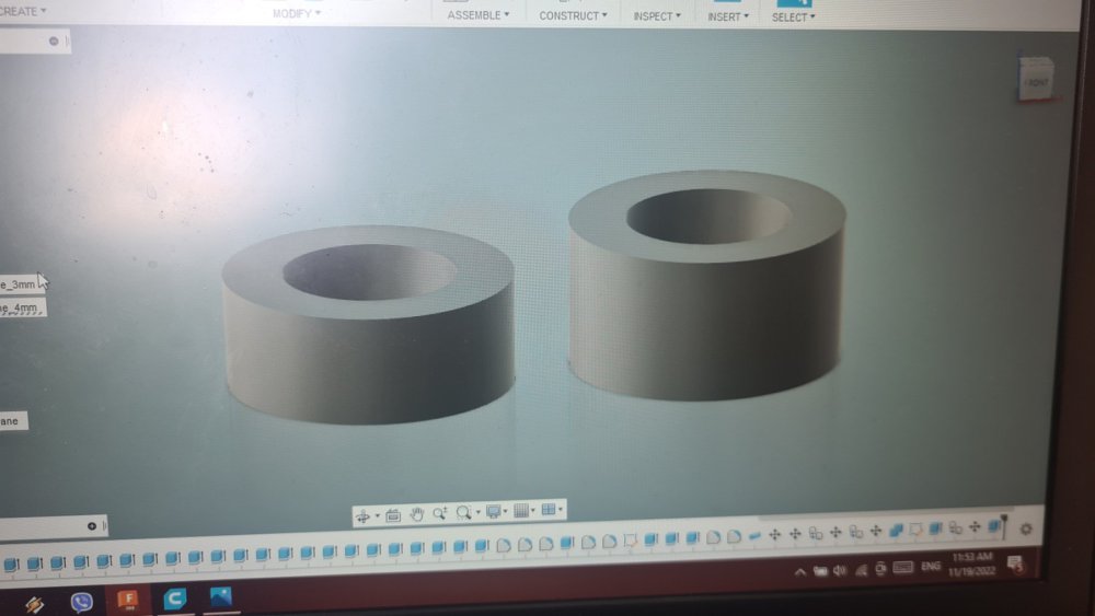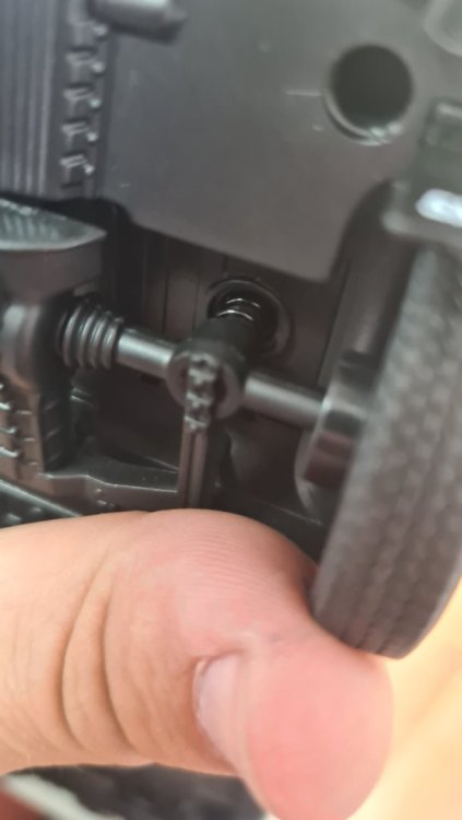 Освен окачването, направих и една друга малка промяна - махнах калобраните. Снимал съм ги , за да покажа за пореден път детайлността на модела: Сега да споделя как се справих с окачването. Снижаването на окачването на модела се оказа изключително лесно. И отпред, и отзад стана с подлагането на втулки. Отпред - под амортесьорите, отзад - още по-добре - над тях, за да направи кембър (наклон на гумата). Снимал съм отпред как стана - отзад - забравих ? Eто го предното окачване: Вече разглобено: Работата е ясна, трябват втулки. Палим веднага програмата за чертане, и след 2 минути имаме готов модел. Направих 3мм и 4мм, за да мога да си регулирам по желание: След 20 минути втулките се бяха материализирали: И остана само да ги сложа - детска игра. Ето я и предницата с вече подложени втулки: Сглобяване по обратен ред. Задницата не съм я снимал, тъй като там просто развивам болтчето отгоре на окачването, слагам втулката, и завивам. Използвах и отпред, и отзад 3мм втулки, като отзад мисля, че може да сложа и 4мм. Но май и така си ми харесва стойката. И ето малко снимки от всички страни - харесва ми как застана, като си гледам истинката Биляна, смятам, че постигнах точно желаният ефект:12 points