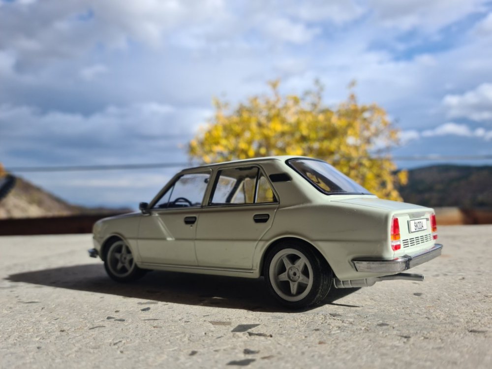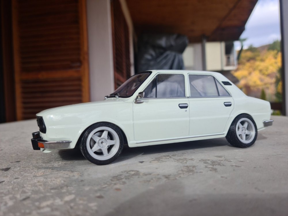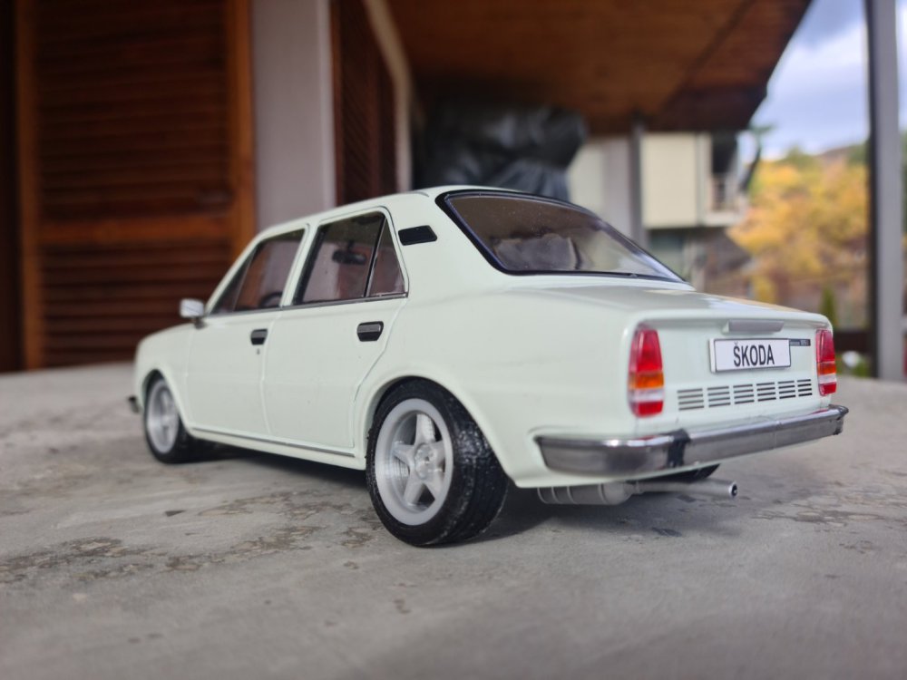 Привет, колеги! Тази вечер пускам тема за един мой малък страничен проект, отново на тема Шкода, но този път ще е нещо по-различно от всичко, за което сме писали и чели до момента тук в този форум. Става въпрос за "проект" на Шкода 120Л, но в мащаб 1:24. Надявам се да ви е интересно четивото и снимковият материал, който предстои да ви представя. Лично на мен винаги ми се е искало някой ден да си направя максимално точен макет на някой от проектите си. Дойде моментът и това да се случи! Ще се опитам да бъда кратък в описанието и обясненията си. За какво иде реч? Иде реч за максимално точен макет на големият ми настоящ проект - Биляна. Тъй като той е в сериозен, вече почти двугодишен застой по вина на бояджиите, ми се откри доста свободно време, пък и идват студените месеци вкъщи, и смятам, че няма по-подходящо време за подобни занимавки. Идеята ми е доста проста - имаме много хубав и детайлен макет на Шкода 120Л, отговарящ на 99% на моделната година на голямата Биляна, по който ще направя дребни визуални промени, с които ще заприлича на бъдещата голяма Биляна. За щастие, идеята за нея ми е тя да си остане в почти фабричен вид, с някои дребни промени, но все пак ще е предизвикателство да пренеса идеите си в мащаб 1:24, още повече имайки предвид, че никога не съм се занимавал с моделизъм, или каквото и да било близко до това хоби. Тоест - ще се уча в движение и ще импровизирам В този пост ще представя моделчето. То е доста детайлно, и се сдобих с него съвсем случайно - по обява във фейсбук в група за умалени модели. По случайност се оказа и бял цвят, и веднага след като пристигна в главата ми се зароди идеята за макет на истинската кола. Тогава още обаче нямах завършен образ как ще изглежда самата Биляна, тя беше при бояджия, нямаше окачване, джанти. Закучиха се нещата около боядисването, върнаха ми колата, сложих си окачването, джантите, тя си дойде на правилната стойка, направих стопове, започнах работа и по фаровете - с други думи визията се изясни. И всече мога да я пренеса в мащаб. Всички дребни детайли са доста подробни. Отвсякъде погледнато, разбира се, дори отдолу - има си действащо предно и задно шкодово окачване, при това с полуоски, отпред с моста, резервна гума, кутия, фарове, стопове - много са се постарали китайците. Та ето снимки и на самият модел: Изключително детайлен модел, повече от доволен съм! Недостатък е, че не се отварят врати и капаци, но високото ниво на детайли някак си компенсира тази нередност. Ето и малко интериорни снимки: И малко снимки на детайлите - окачвания, фарове, стопове: Та така, това е количката. Лека-полека започвам да си играя с нея, вече имам малък прогрес, но ще продължа в следващ пост. Поздрави, и лека вечер!12 points