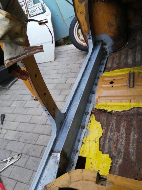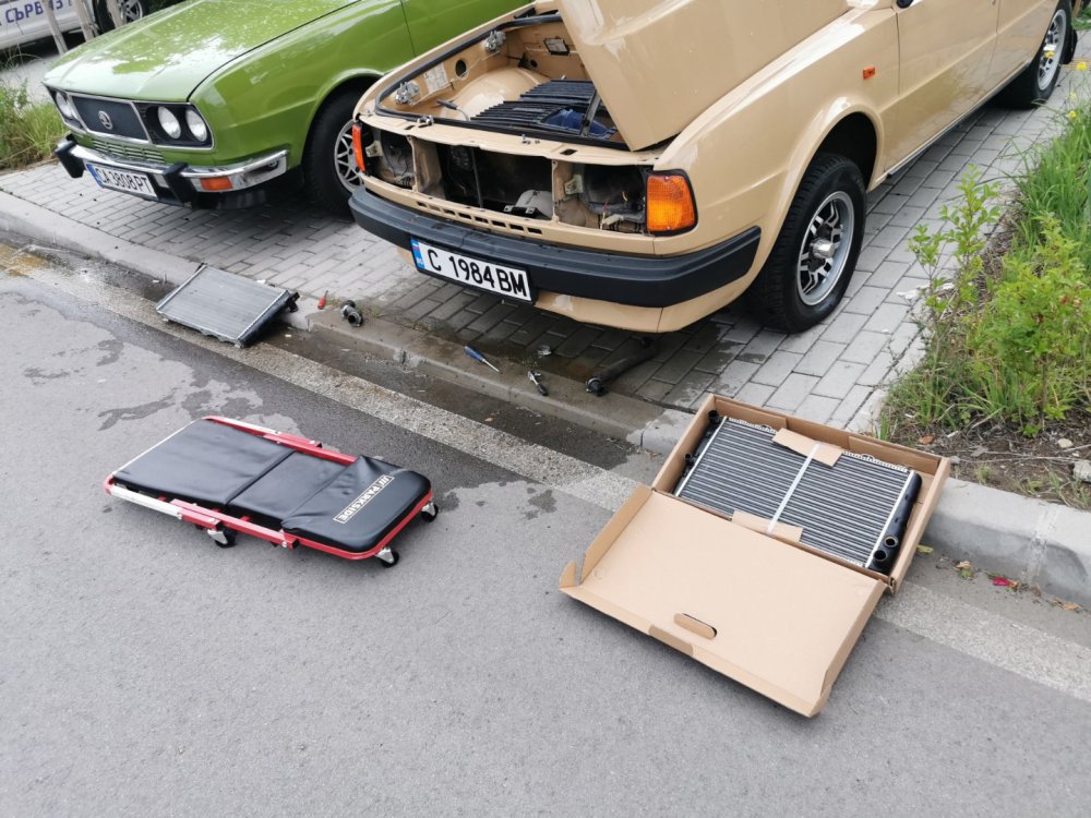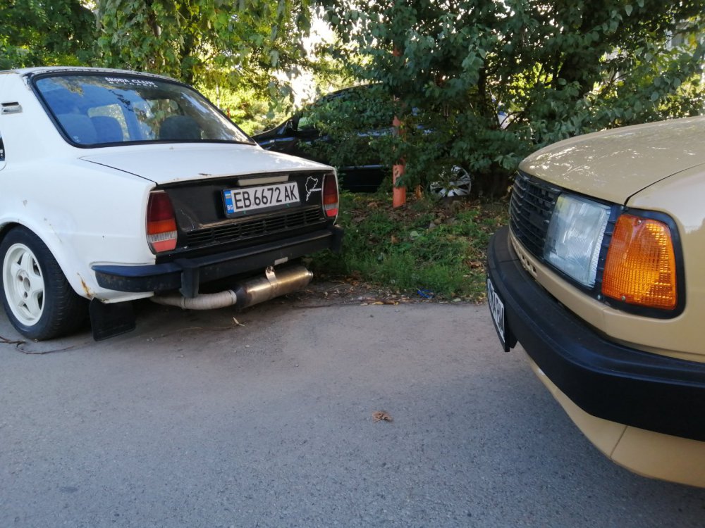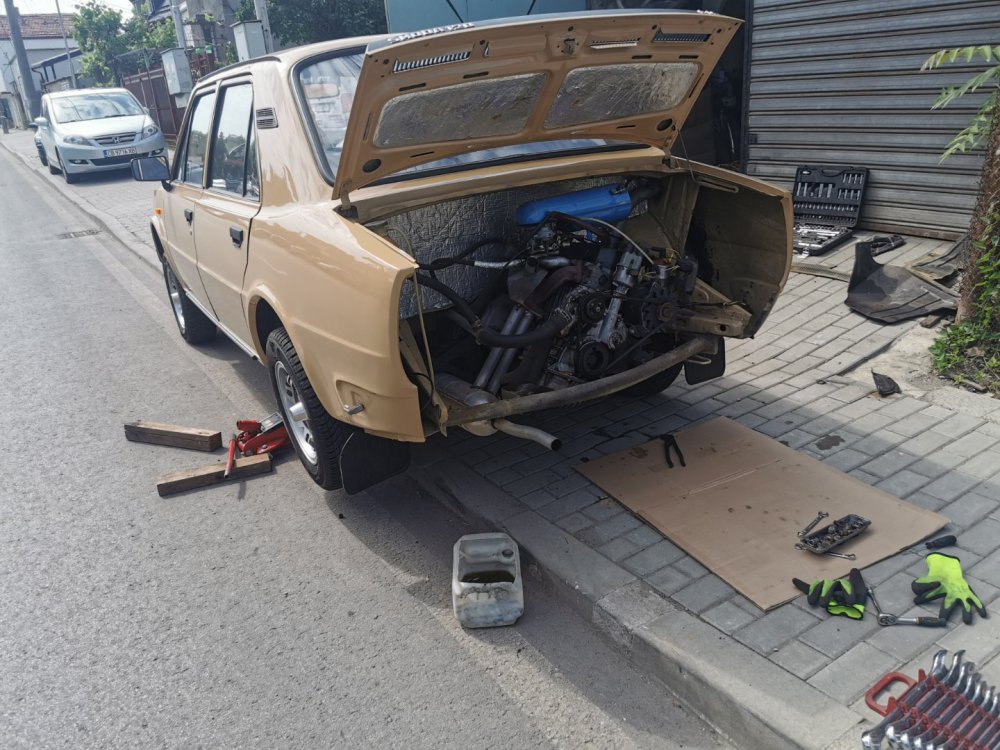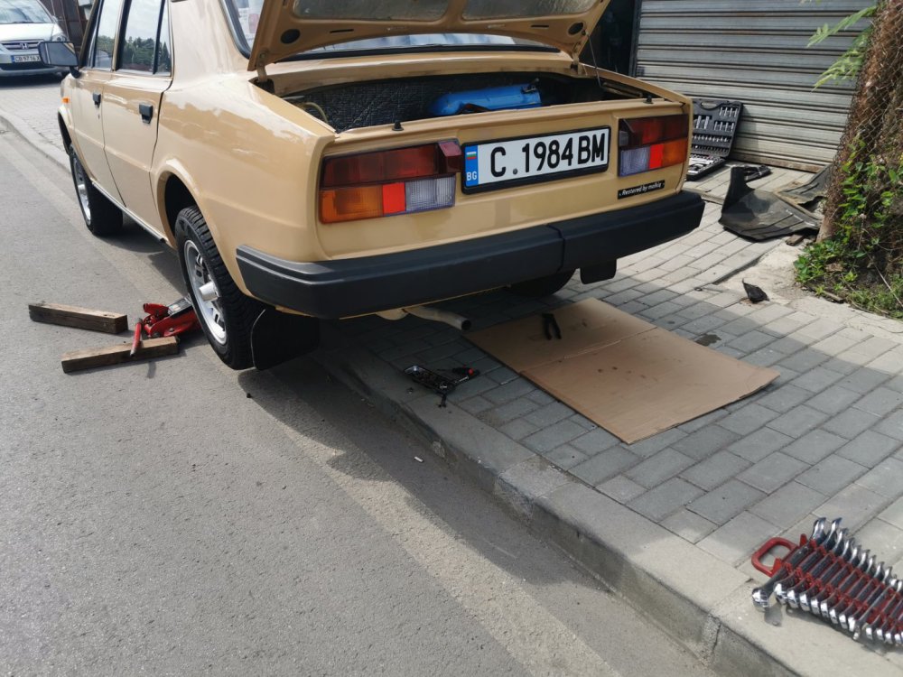 И такааа, както може да се досетите по снимките, които качвам, когато на някоя сбирка има задномоторка, тя винаги получава много специално внимание от моя страна. Баща ми преди фелата имаше 120ка и от няколко години насам и аз много искам. В интерес на истината от доста време следя обяви и си бях казал, че тази година ще купя една по повод, че скоро навършвам пълнолетие. Обаче така се завъртяха нещата, че донякъде тя ме намери. От миналото лято я гледам пред сервиза с идеята, че е поредният недовършен и изоставен проект: (снимка от миналата година, гледаме колата в дъното, а сглобената 105чка си има друг собственик, но и там е голяма лудница) Та, един ден по време на обедната почивка, аз както винаги си мрънкам за цените по обявите, шефът ме чу, врътна набързо два телефона иии... - обещаха ми кола! Шкодичката в 120l 1990г. на реални малко над 40к км, купувана е от Германия и е докарана тук 1994г. Собственикът почива и реално брат му се заема с колата. Докарана е до Люси, разглобена е изцяло с идеята за пълна реставрация, но това така и не се случва. Колата седи години наред така до началото на този септември. Уговорихме се с човека, че двигателят трябва да се качи, за да може да се мине през КАТ и колата да се оправи документално от негова страна. Това малко се проточи във времето, защото идната седмица имах доста ангажименти: В първият удобен момент успяхме да я отворим и да я изкараме от трънаците, понеже още нямаше ключ: Първа баня: Една добра идея да припомпим 30+ годишни напукани гуми за да бутаме по-лесно и ПАА, започваме с летящ старт и малко псувни:)) Както и да е, качихме мотора, но не ми беше достатъчно и реших, че така и така ще се качва, искам и да пали. Оказа се, че стартерът е починал и докато си купя друг, Ивчо @__smirnoff__ беше така добър да ми даде назаем: Запалихме, поиграхме си малко с настройката на запалването и започна да звучи добре горе-долу. Добре, но запалил съм я, бива ли да не мога да врътна кръгче с нея... Последваха качване на елементите на охладителната система, наливане и обезвъздушаване с вода и отстраняване на няколко теча, които се появиха своевременно. Помпичката на съединителя , която е на кутията беше изцяло запекла - смених я с чисто нова, като с това смених и спирачната течност. Дойде време за първото каране, което от сегашната ми гледна точка беше много неприятно относно усещане на колата, но го имаше все пак. Няколко пъти така изкарване от сервиза и вкарване на ход и започнах да губя съединителя, а в краката се появи една локва - и горната помпичка беше заминала. Купих си ново бутало и за резерва два комплекта само гумички. Лека полека взе да става много приятна. Понеже започнах да усещам за липси по колата реших лека полека да започна да я сглобявам, за да разбера какво ми е нужно. Започнах да си оставам редовно извън и работно време: Чат-пат бабата спеше на топло: Взе да добива вид, макар и всичко отвън да е хванато на половината болтове само, за да си го представя: Поиграх си и вкарах фелициевите седалки вътре макар, че искат още малко занимавка за да ми харесат: Дойде и момента, официално да купя колата, да получа ключ и вече да съм сигурен, че сериозно мога да се захващам с нея: Вече си купих мой стартер и започвам да се оглеждам какво ще ми потрябва за да я направя комплектна. Днес @joro-120L ми беше малко на гости, поиграхме си с настройка на карбуратора, изч