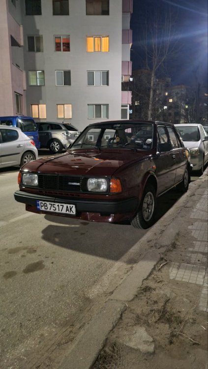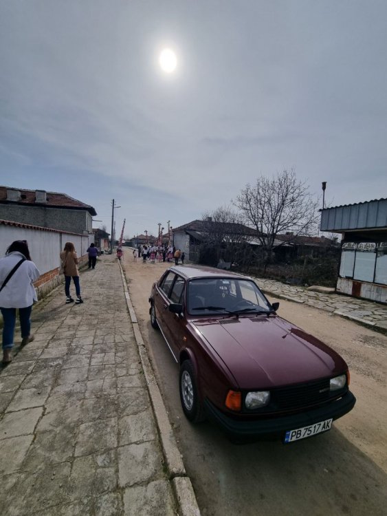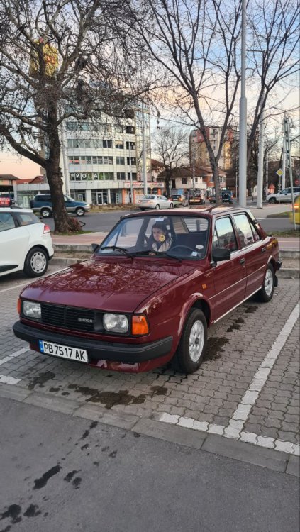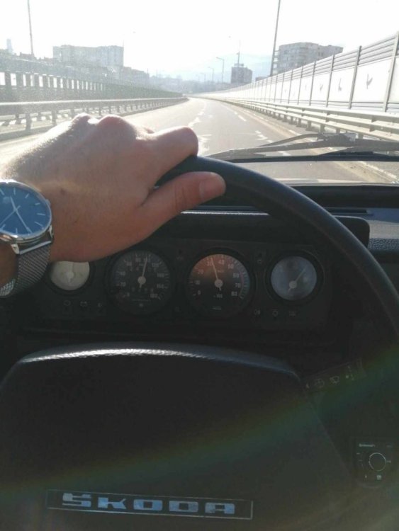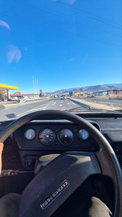 Привет, за първи път от две години Не съм писал скоро в тази тема, и реших да надраскам някой ред и да споделя какво се случва с този прекрасен автомобил Общо взето само се кара. Безпроблемен е, има някои неща, които вече започват да се обаждат - рейка, лагер на съединител, и предстои в някакъв момент работа и по тях, но за момента колата си се движи безгрижно и безпроблемно. Тази седмица реших да прекарам само с нея. Миналата неделя следобеда паркирах ежедневната пластмаса, и изкарах бижуто от гаража. Дори и баничарката използвах през седмицата само в краен случай, по цял ден си обикалях със Шкодата. Като я изкарах от гаража, беше малко мръсничка и прашна. Първа спирка - бензиностанцията, да и сипя бензин и да напомпам гумите: Цял ден си я карах прашна, вечерта отидох да взимам жената от работа - накарах я да си остави колата, и няколко дни я разкарвах до работа и обратно - много ми се караше До нейната работа има автомивка, и я поизмих набързо: Започнах да си обикалям вече с удоволствие: Ето я и паркирана вечер вкъщи, на новопостроената и площадка: и една снимка пак оттам, по залез слънце: Въртях доста километри през седмицата, общо изминах около 800 км, може и малко повече, посетихме доста места: Уикенда имаше кукери в на жената селото, използвахме повода да си направим една страхотна разходка, изминахме над 150 безпроблемни километра, и изкарахме страхотен и усмихнат уикенд: Не се мина и без ремонти, за щастие, само козметични. На задна дясна врата, при отваряне на прозореца жилото се беше измъкнало от гумената шлауха, в която седи, и тропаше адски неприятно. Направо ме вбесяваше. За 10 минути проблема беше решен: Имаше и подобрения, соц тунинг малко. Сложих си "жижаната" топка за скорстния лост: Колко е красиво и готино - въпрос на вкус на мен ми харесва, най-вече самото усещане на нещо по-масивно, за разлика от фабричното малко топче. Доста по-приятно е шофирането с масивно топче в ръката. Както вече казах, цялата седмица мина абсолютно безпроблемно. От нещата, които започват да се обаждат, най-спешна е бензиновата помпа. Имам приготвена една, прилежно измита и почистена, и намерих за нея в гаража чисто ново чехосложашко платно, така че скоро предстои смяна: И така, мина една прекрасна седмица. Днес следобед смятам да я измия, и утре сутринта влиза пак в гаража15 points