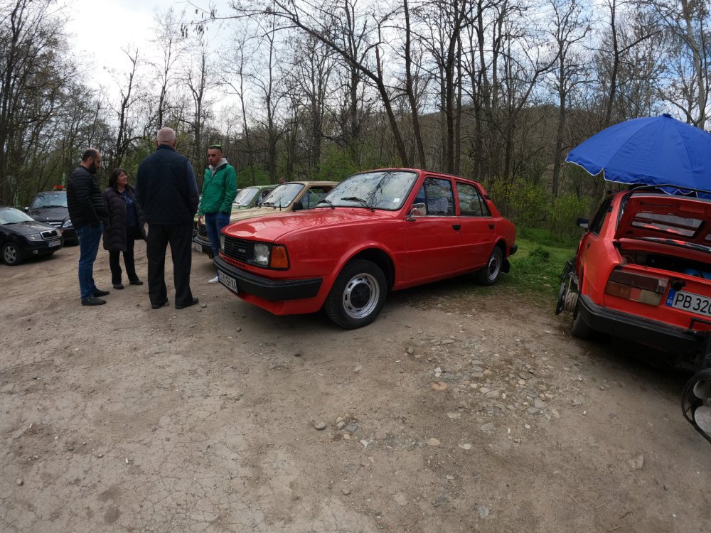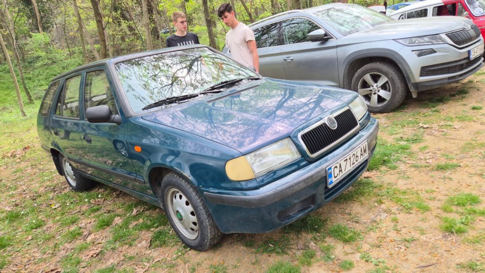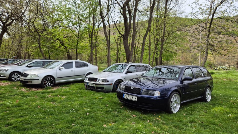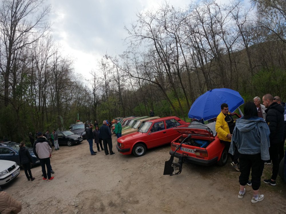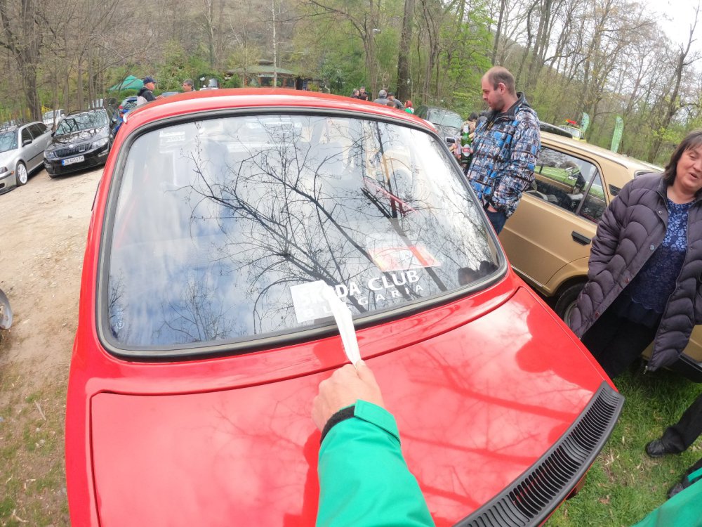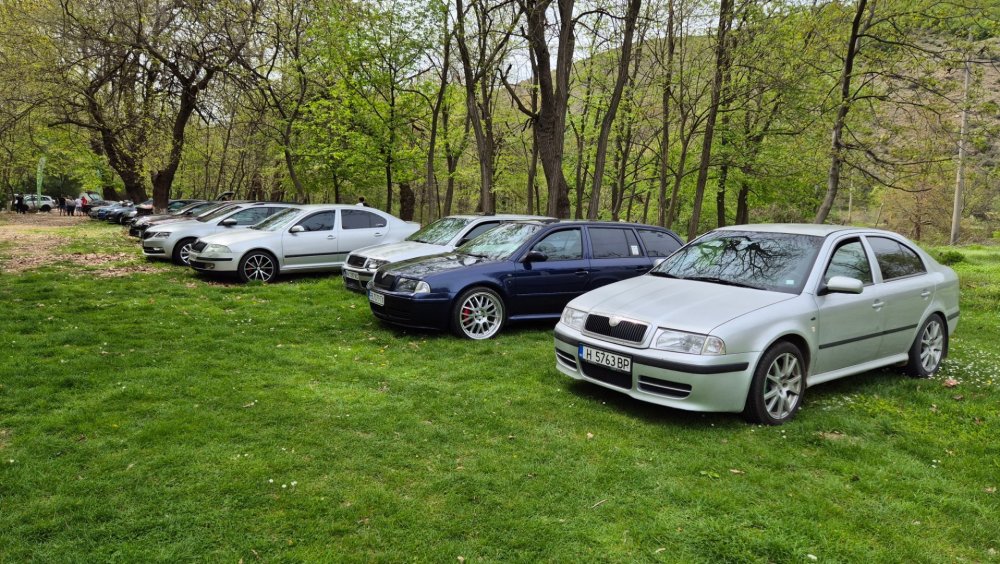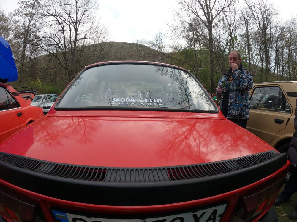 Изключително приятно си изкарах, за пореден път! Много хубава и приятна среща се получи, времето също беше с нас. Много съм благодарен на всички за хубавото настроение и усмивките! Както обикновено, нямах особено много свободно време да снимам, снимковият ми материал е сравнително оскъден, също така и непрофесионален, сниман с мобифона, но все пак има някой друг хубав кадър. По традиция подготовката започва от предния ден. Шкодата беше старателно измита, подсушена, и паркирана в очакване на сутринта: На следващия ден рано-рано вече бяхме на поляната в очакване на други шкодички: И лека-полека поляната започна да се пълни с коли и хора: Времето беше изключително подходящо, и аз реших да си позволя да ударя една студена биричка (пък и си имах и шофьор за после): И така времето си минаваше, мохабетите вървяха, и лека-полека храта е преместиха към масите. Тук е момента за пореден път да благодаря на нащите домакини от "малкия Явор" с. Първенец, които за пореден път ни посрещнаха без забележки. И така, след като на поляната останаха главно коли, имах време да нащракам някоя и друга снимка на присъстващите:12 points