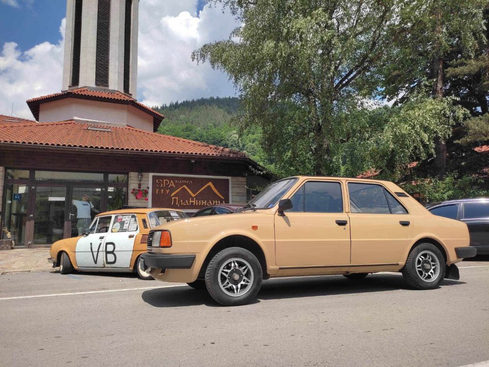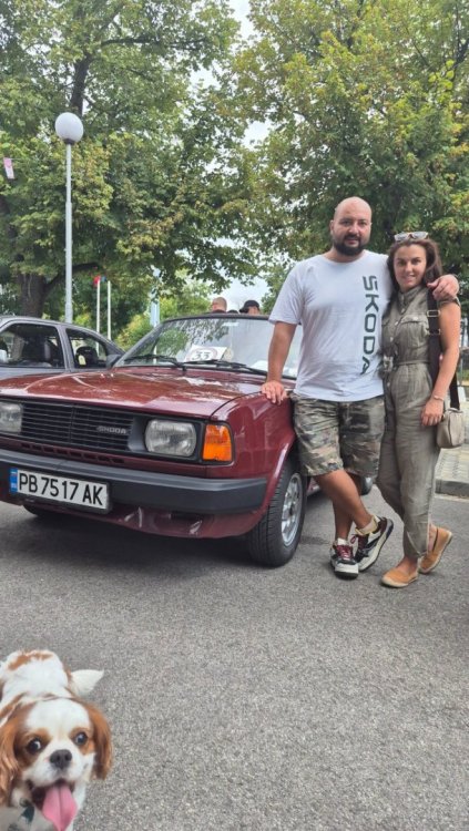 От адски много време не е писано за колата, разчиствах си телефона и подреждах снимки и реших да поразкажа на бързо една две години... Реално след боята и окончателното сглобяване по колата са направени много малко дребни ремонти. За жалост не е навъртяла много километри но при всяко палене е докарвала една голяма усмивка!!! Ще опитам да съм максимално "календарен" и последователен времево за тези две години и половина в които не сме писали в темата... За рожденния си ден през 2021ва година Боре получи подарък от мен... Изненадата беше замислена предварително, знаете че използвам БЕЗВЪЗМЕЗНО един от гаражите на Боре, следователно той има ключ. На рожденния му ден, звъннах по телефона и го помолих да слезе до гаража и да ми снима няква част (не помня каква). Без дори да споменавам или чиститя рожденния му ден! Той типично в негов стил взе да ръмжи да ме храни и да ми обяснява как му е писнало от мен и клошарията ми... Абе беше дълъг разговор и все с критики към мен, характера ми, хобито ми и сексуалната ми ориентация (не мога да го цитирам "в ефир") Изтърпях цялата хранилка и зачаках "да ми свърши работа" След известно време получих снимки, те говорят достатъчно. След което си получи и пожеланията по телефона, а по-късно вечерта и на живо. След този празник дойдоха коледно-новогодишните празници и реших с половинката да пътуваме до Боровец в компанията на Бореславка... След празниците излезе събитийния календар на автомобилните мероприятия и реших, че след толкова много труд по колата е редно да я представим пред публика в залата на VW Fest 2022 Но оставаше един последен щрих за да завърша вида на колата, а именно таркалетата. Закарах ги в Смарт Репеар, но момчетата установиха, че за да се струговат челно, ще се отнеме голяма част от матеряла, заради специфичната форма на джантата и аз се отказах... След като взех решение да е боя, закарах джантите на възможно най финната пясъкоструйка в София... Положихме сивото, а после и черното(на което нямам снимка, защото отново всичко беше в последния момент) След това се налижи да препиля централния отвор заради добре познатите чашки за крем карамел... След това монтирахме гумите, а час след монтажа, колата влезе в залата на Интер Експо Центъра... Там я налъскахме едно хубаво и представихме достойно клуба , като освен нея участваха и още 5 "клубни красоти" Естественно не мина и без позьорщини... А конкретно на тази позьорщина си личи колко съм горд от свършената работа!!! Няколко седмици след феста, реших да увековеча проекта като го заснемем в студиото на 360karscan 215bed07-c3f7-4df0-a0bc-7e69e28c44f7.mp4 Ето и линк на цялата виртуална реалност заснета от нашите приятели и партньори на клуба!!! https://360carscan.com/index.php/2022/10/28/skoda-120-gls/ След VW Fest 2022, следваше и нашето клубно мероприятие "Първенец" на което нямаше как колата да не присъства, този път управлявана от собственника си, а аз и Деси бяхме куфарчета, но това не ни попречи да и се насладим максимално! Няколко снимки на колата от събитието... А след това направихме едно гости с преспиване (препиване) на Иво Още на "Първенец" направихме таен план с Милена (жената на Иво) да го изненадаме за рожденния му ден и да отидем заедно на море. А аз реших, че едно пътуване до Амолиани-Гърция с подходящата компания, може да е по-хубаво, само ако е със задномоторки! И взех да потготвям колата за дълъг път... В общи линии не съм въ