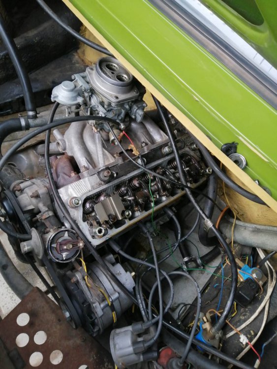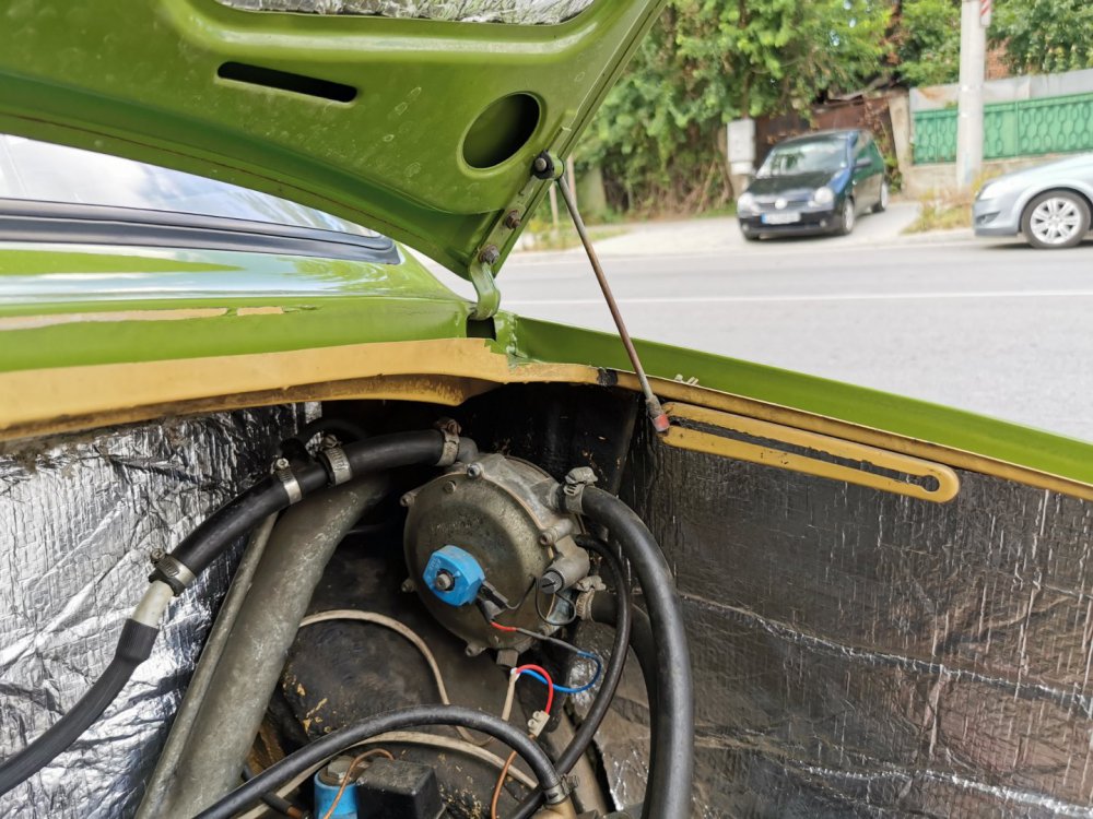 !!! Дълъг пост !!! От както колата е моя, се случват много неща, но предимно се возя!!! Още когато взех колата имаше много лек теч на антифриз в задната част на блока на двигателя. И аз и Момчил смятахме, че теча е от термостатното тяло, свалих го веднъж, смених гарнитурата, сглобих и след няколко дни теча отново се появи. Ядосах се свалих цялото термостатно тяло, закарах го да го "челосат" на фреза сложих малко по дебела гарнитура и след няколко дни, по блока отново имаше зелени капки... е тогава вече много се ядосах... Свалих всмукателния и изпускателния колектор и какво да видя, капката се стича между главата и блока... предстоеше ми пътуване с колата и реших, че няма да се занимавам със сваляне на глава, източих антифриза и маслото, разхлабих главата и я стегнах на ново, от тогава не съм докосвал охладителната система и не съм имал проблеми или течове. Естественно при престягането на главата напаснах и клапани... След няколко стотин километра се появи лек теч на масло от бензиновата помпа, отстрани се със смяна на гарнитурки... След още няколко стотин километра колата взе да не държи обороти, да няма сила във високите и като цяло да не работи добре. Разгледах детайлно мотора и установих, че една осичка на карба липсва... явно е напуснала кораба от зор... Свалих от стар карб и продължихме да се возим... След още няколко стотин километра колата пак взе да придърпва, смени и се звука и си казах карба отново се предаде, а то какво станало... За да стане ясно от къде е дошъл проблема трябва да се знае малко повече за колата. Монтирана е газова уредба, защото резервоара държи само 20тина литра бензин и след това прокапва и е било по лесно да се монтира газ. Освен това колата е 136, със всмукателен колектор от задномоторен 136 и карб (наклона е спазен), но над карба имамонтирана плочка за газ, което повдига филтърната кутия с около 20мм., освен това двигателя не е от задномоторка, както и стойката на главата няма място за монтаж на цилиндричната филтърна кутия. Равносметката е следната, филтърната кутия се държи с една външна пружина за карба, защото болта не може да мине през плочката, едната стойка на кутията е във въздуха а другата е захваната на импровизирана планка (вижда се на снимката). Реших да променя всичко кардинално, оставих задната стойка на кутията заводска но изработих стойка, която се монтира на колектора на която да легне, освен това изработих и нова предна стойка която да ляга на 136 шина на главата. Боядисах в черно само дъното, защото нямах синьо и реших да не батисвам цялата кутия в черно... Продължихме да се возим и на един светофар замериса сериозно на бензин, отбих а зад мен дълга диря... оказа се лек ремонт нацепен горивен маркуч... лесен ремонт... Преди поредното пътешествие, забелязах сериозно омасляване около шайбата на коляновия вал, беше се накиснал дори ремъка... Смених семеринга и ремъка и потеглихме на поредното пътешествие... Започнах да карам колата ежедневно на работа, около 100тина километра градско, всеки ден около 2 месеца. Единственния проблем, който създаде колата е излезнала ос на дръжката на шофьорската врата, върнахме я на място и продължихме... Един ден, не помя кога, като гледам е с металните джанти, значи още е било студено, нещо взе да ми притропва отзад, точно минавайки покрай сервиза на приятел, спрях стегна ми полуоската и продължих... В об