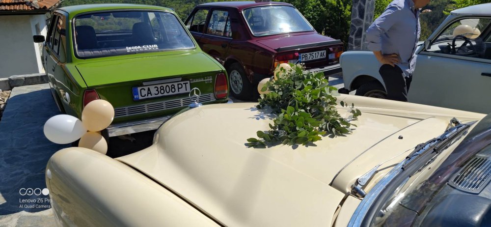 Ами то се е видяло, че веднъж годишно ще пиша в темата, така че спокойно мога да поразкажа малко какво се случи изминалата година с колата. Ще бъде сравнително дълъг фоторазказ, съжалявам, ако доскучае на някой Изминалата година и половина от предния ми пост беше доста активна за Шкодата. Имаше много каране, приятен брой посетени събития, много разходки, доста ежедневно каране, и разбира се - проблеми. Ще се опитам да карам в хронологичен ред, за да е по-прегледно. Логично, започвам с подготовката на срещата в Първенец през 2023 година. Ден по-рано си взех колата от града и се я прибрах при мен. Едно миене, и вече беше готова за среща: Вечерта направихме и една вечерна разходка из Пловдив с компания: Малко след срещата в Първенец, ми предстоеше едно от важните събития в живота - сватбата ми. Шкодата, макар да не беше младоженската кола, беше част от кортежа към сватбения автомобил. Съответно хубаво миене и подготовка, ето и една-две снимки от деня преди сватбата, и една-две от самата сватба: Тук-таме из разказа ще вкарвам и по някоя снимка от ежедневието. Измежду другите ежедневни коли Шкодата успя да навърти хубав пробег през годината, доста често си я карах и нея, макар да се бях съсредоточил върху новата си стара играчка - Голф 2, на който навъртях над 13000 км за 10 месеца. Ето и първата порция от ежедневни снимки: Не минахме и без ремонти. Единия от тях беше доста стряскащ - на прибиране към вкъщи една вечер градусите взеха сериозно да се вдигат. Живеейки в планината, това си е проблем. Успях да се прибера преди температурата да стигне 100 градуса, и веднага последва ремонт - оказа се окисляване на буксите на перката. Изкарах предницата от площадката, легнах отдолу, направих едно хубаво почистване на кабелните обувки, и всичко си дойде на мястото: Имаше и дребен проблем отзад вляво - започна да тропа, и се оказа скъсан тампон под пружината, лесен и бърз ремонт: Дойде време и за подготовката на първото по рода си събитие - Задномоторна среща 2023 г. С Коцето @malkiq направихме една опознавателна обиколка на мястото, както и на маршрута, който в последствие използвахме за автопохода, и го направихме именно със старите баби: И това пътуване не мина без дребен проблем, по едно време изчезна мощността на колата, за щастие много бързо се усетих какво става - беше се поотхлабило жилото на газта, и педала нямаше ход. Ремонт за 4 минути, и отново газ. Дойде и самата Задномоторна Среща, която беше ПРЕКРАСНА. Тук ще сложа само 2 снимки от нея, другите ги има в темата: Ще си позволя едно лирическо отклонение, което пък е доста важно за самата Шкода. Наложи се да напускам стария гараж, където колата домуваше. Колата преседя няколко месеца на открито, и в последствие реших, колкото и да не ми се иска, да я прибера в подземния гараж. Той пък се превърна в едно доста приятно местенце, защото вътре домуват 3 ретро автомобила - Шкодата, едно много готино трабантче и една перфектно реставрирана Вектра. Стелажите вече отдавна бях напълнил със шкодови части, един плакат за красота, и нещата заспаха. Със съквартиранта ми по гараж се оборудвахме с доста инструменти и аксесоари, нужни за всеки един гараж, както и с маса, столове и чаши. Гаража ни се превърна и в притегателно място за нас и себеподобните ни, и от време на време се събираме там да пием по една бира и да си полафим: Сега пак следва една мал