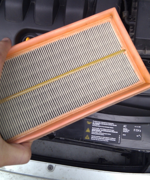 Каза въздушния филтър беше черен като въглен и едва ли не кора хванал - кой знае къде са ходили, но ето ти още един проблем от не смян, който ти бърка здраво в джоба.