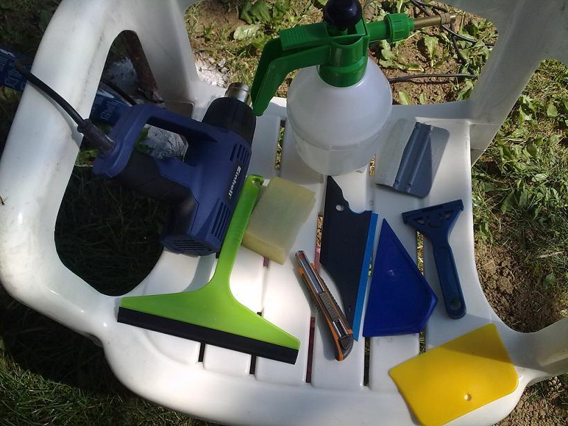 Три шпакли, пистолет за горещ въздух, фолио и нож друго няма